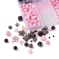 Mega zestaw MIKS koraliki akrylowe, wielokolorowe w tonacji różowy i czarny, MIX kształtów i rozmiarów. Duży zestaw w plastikowym organizerze. 2200 sztuk.