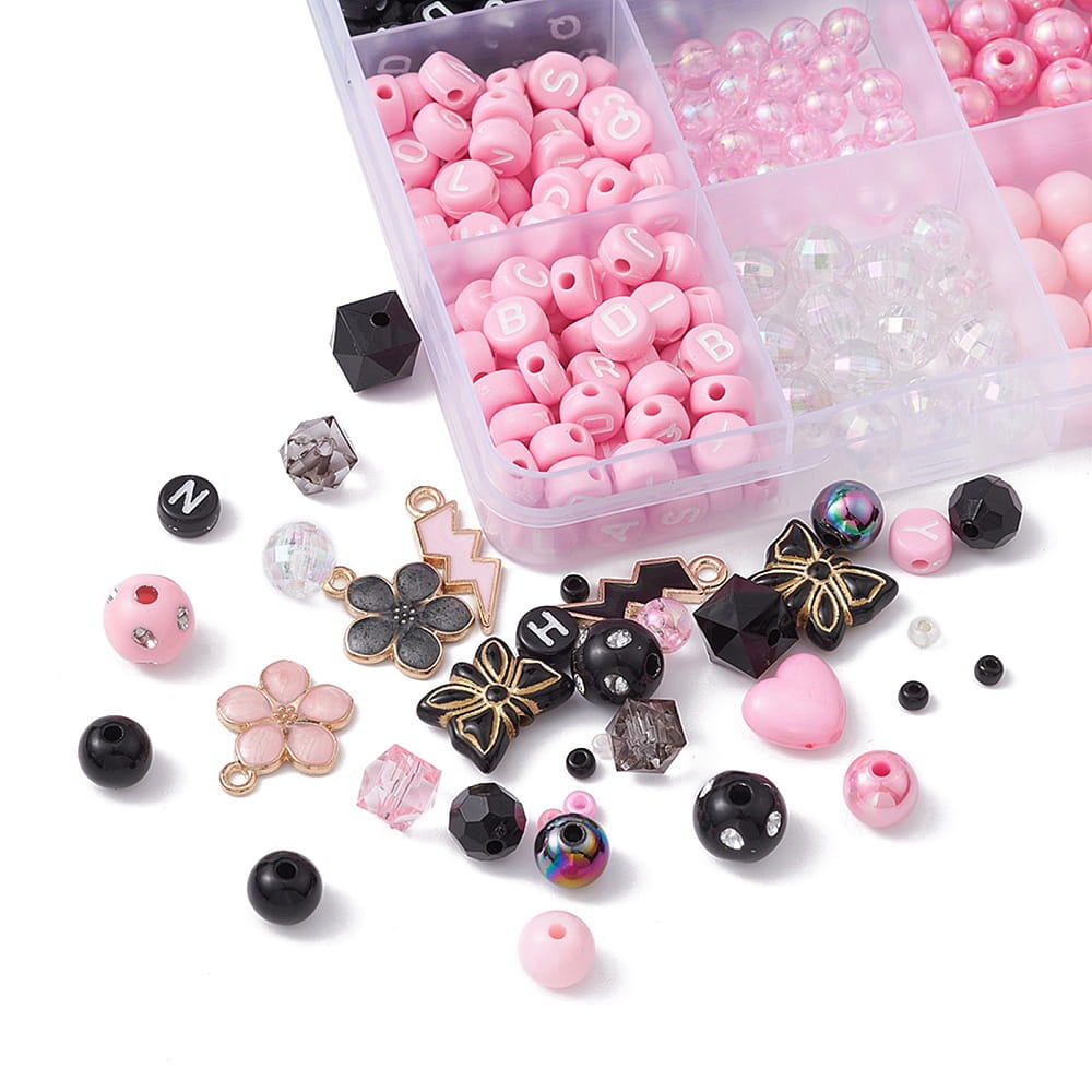 KLZ84 MEGA zestaw MIKS BLACK PINK koraliki zawieszki do bransoletek 2200szt