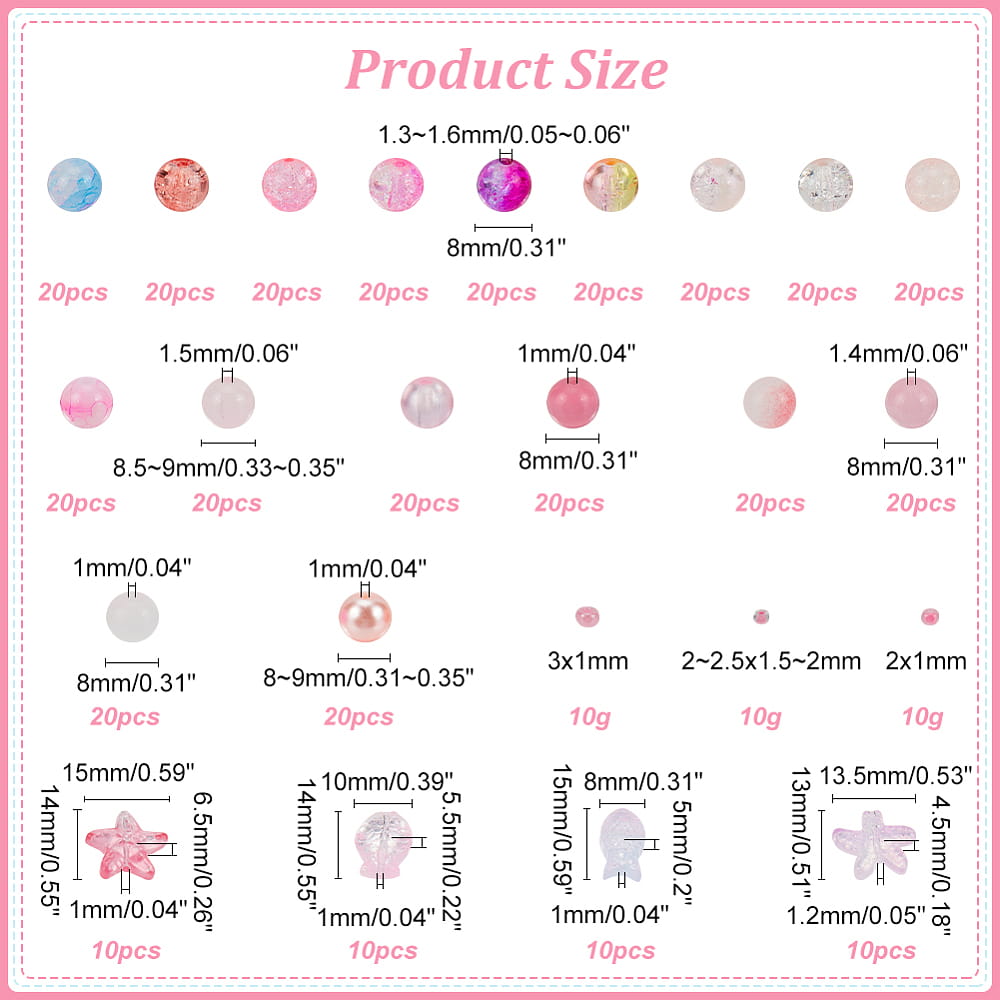 Wymiary koralików są podane szczegółowo na jednej z grafik. Przeważnie: 7-8mm