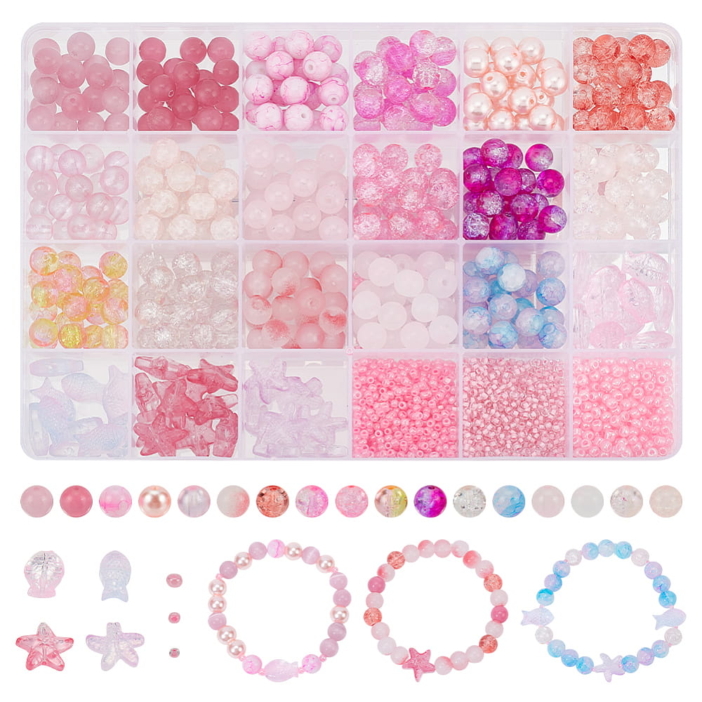Zestaw koralików mix różne kolory. W opakowaniu znajduje się mnóstwo pięknych szklanych koralików. Idealne do DIY, również do tworzenia biżuterii. Koraliki znajdują się w plastikowej kasetce z 24 przegródkami. Ten zestaw pozwoli na stworzenie wielu pięknych bransoletek, kolczyków, smyczy do telefonu, ozdobienie ubrań i nie tylko.