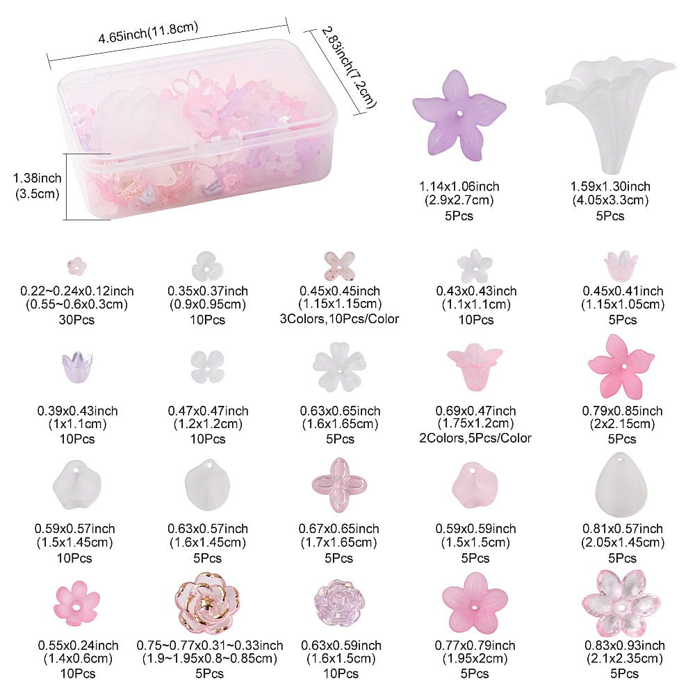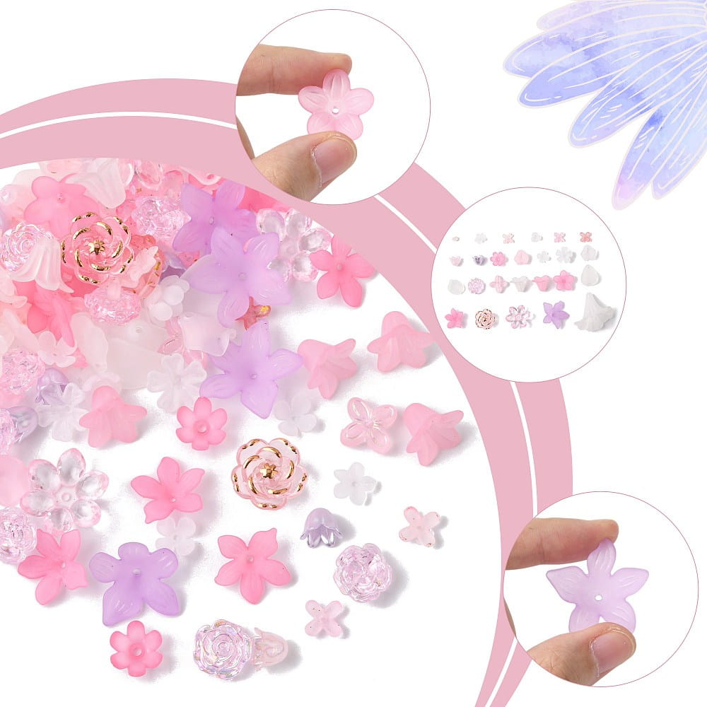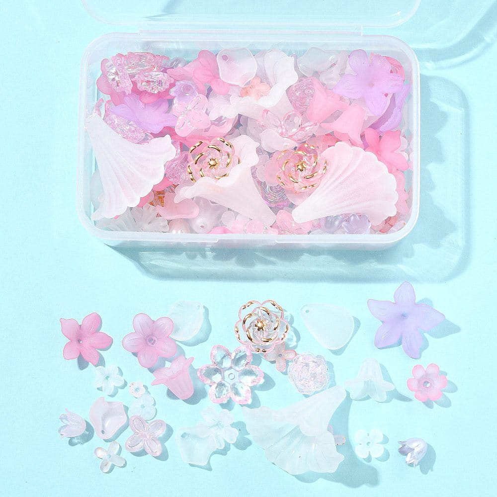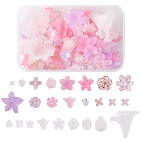 KLZ91 Koraliki akrylowe zestaw MIX kształtów w boksie 200szt różowe
