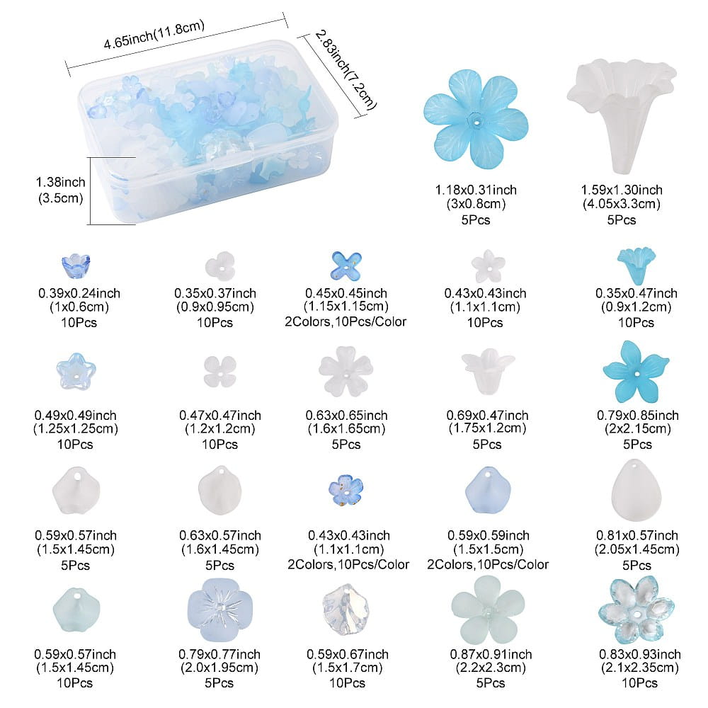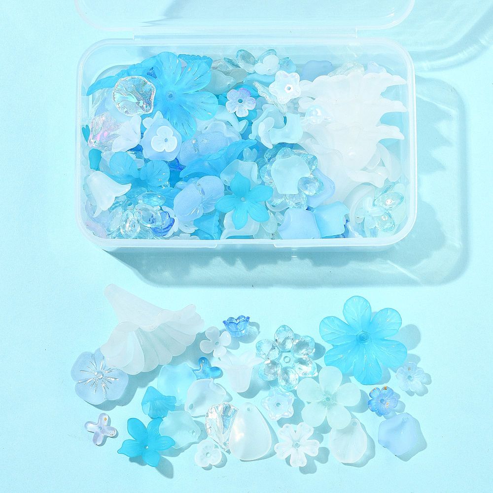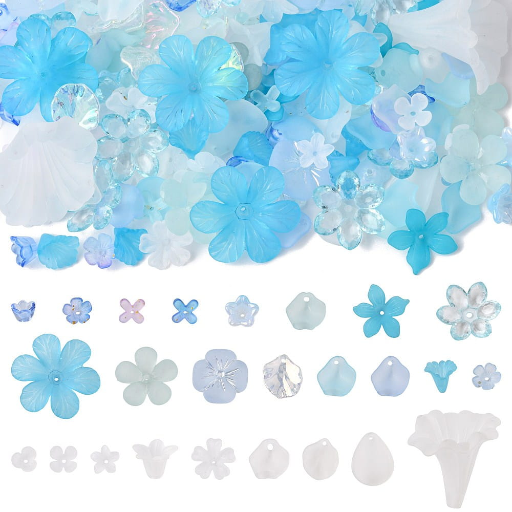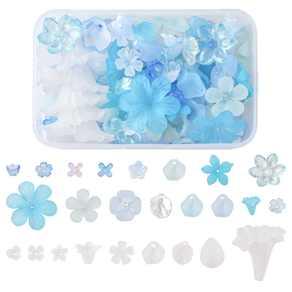 KLZ92 Koraliki akrylowe zestaw MIX kształtów w boksie 200szt niebieskie