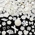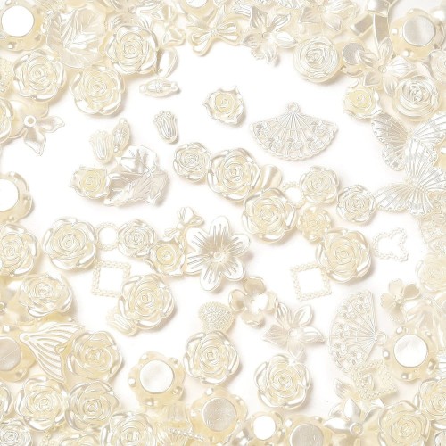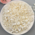 KOK11 Koraliki akrylowe perłowe MIX kształtów róże motylki białe 25g