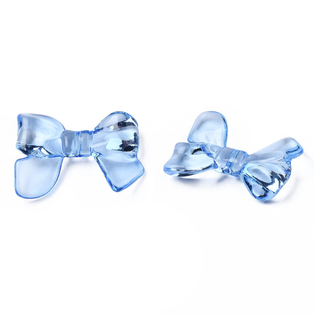 Koraliki akrylowe kokardki, piękne żywe kolory, pakowane po 6 sztuk w woreczku strunowym.