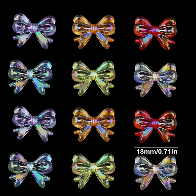 KOK125 Koraliki akrylowe KOKARDKI kokardka 18mm MIX kolorowe opalizujące 10szt