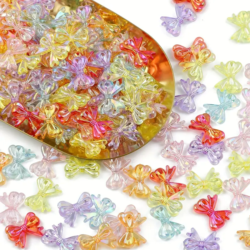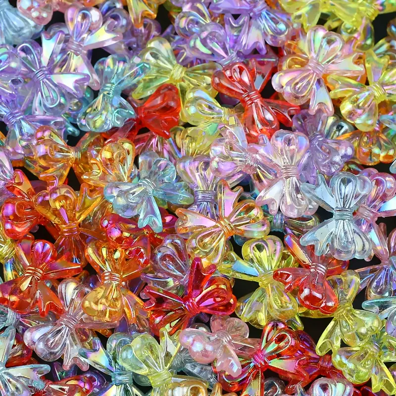 Przepiękne koraliki MIX kolorowe przezroczyste, wykonane z akrylu. Kształt kokardka.