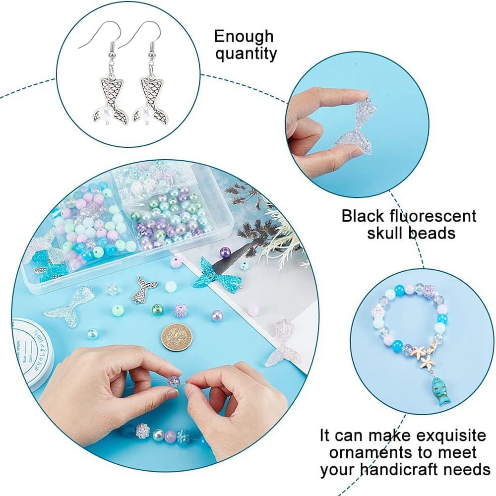 KOK134 Zestaw koraliki zawieszki żyłka SYRENKA morski w kasecie 170szt