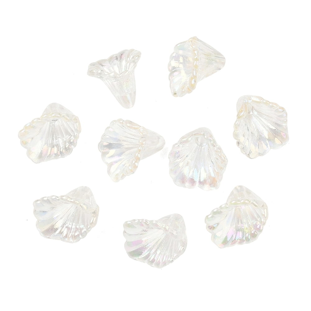 Koraliki kielich dzwonek dzwonki, kalie, kalia 20 sztuk - bezbarwne opalizujące AB efekt syrenki.