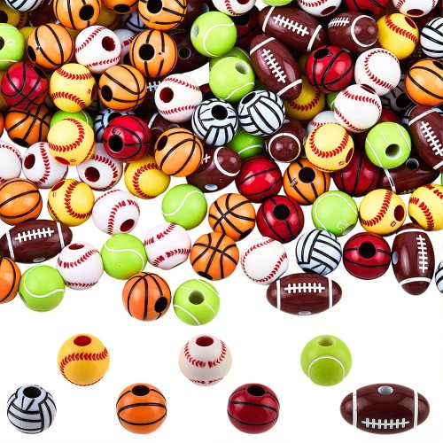 KOK138 Koraliki PIŁKA PIŁKI sport futbol kolorowe akryl 7szt mix