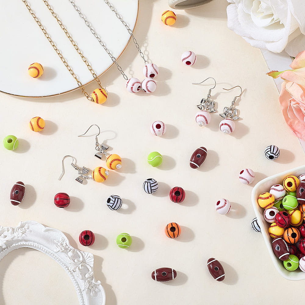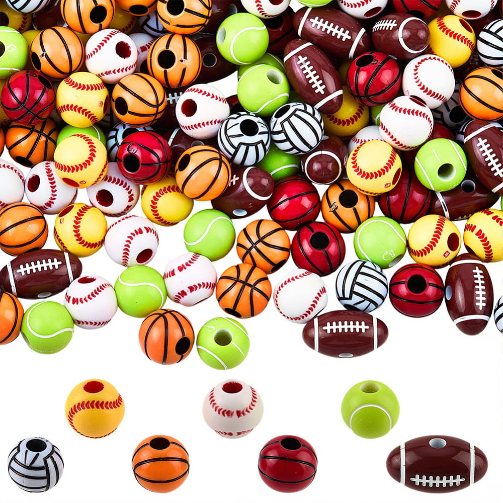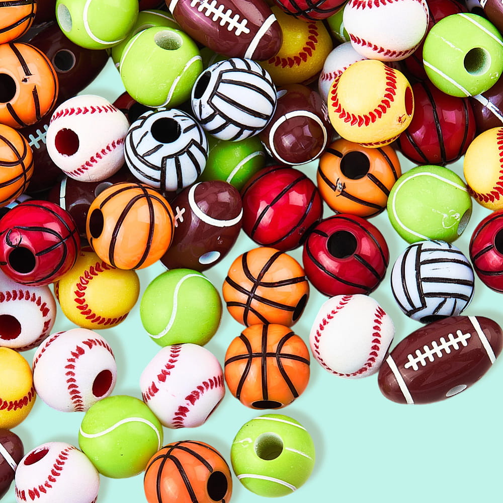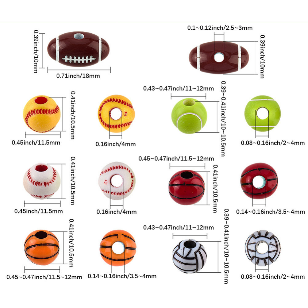 Koraliki PIŁKA piłki sport 7 sztuk - w miksie wzorów i kolorów, każda piłka w innym kolorze.