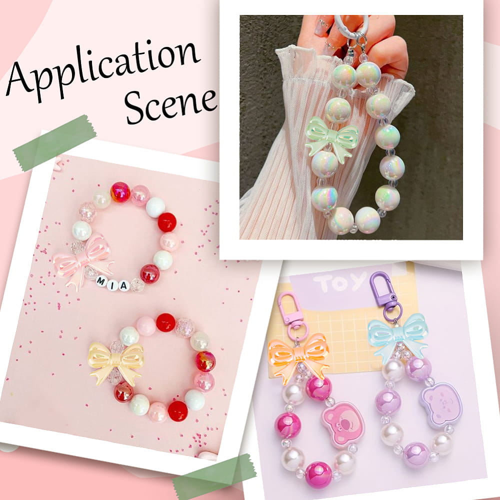 Idealne, jeśli robisz bransoletki i inne wyroby biżuterii hand made, zwłaszcza te personalizowane. Koraliki są wykonane z trwałego akrylu, nie tracą koloru. Są świetne do wykonania breloków, zawieszek i zakładek do książek. Fajnie wyglądają w bransoletkach z koralików fimo katsuki oraz do koralików literki. Uwaga, otwór przechodzi pionowo przez środek kokardki (przez supełek).