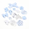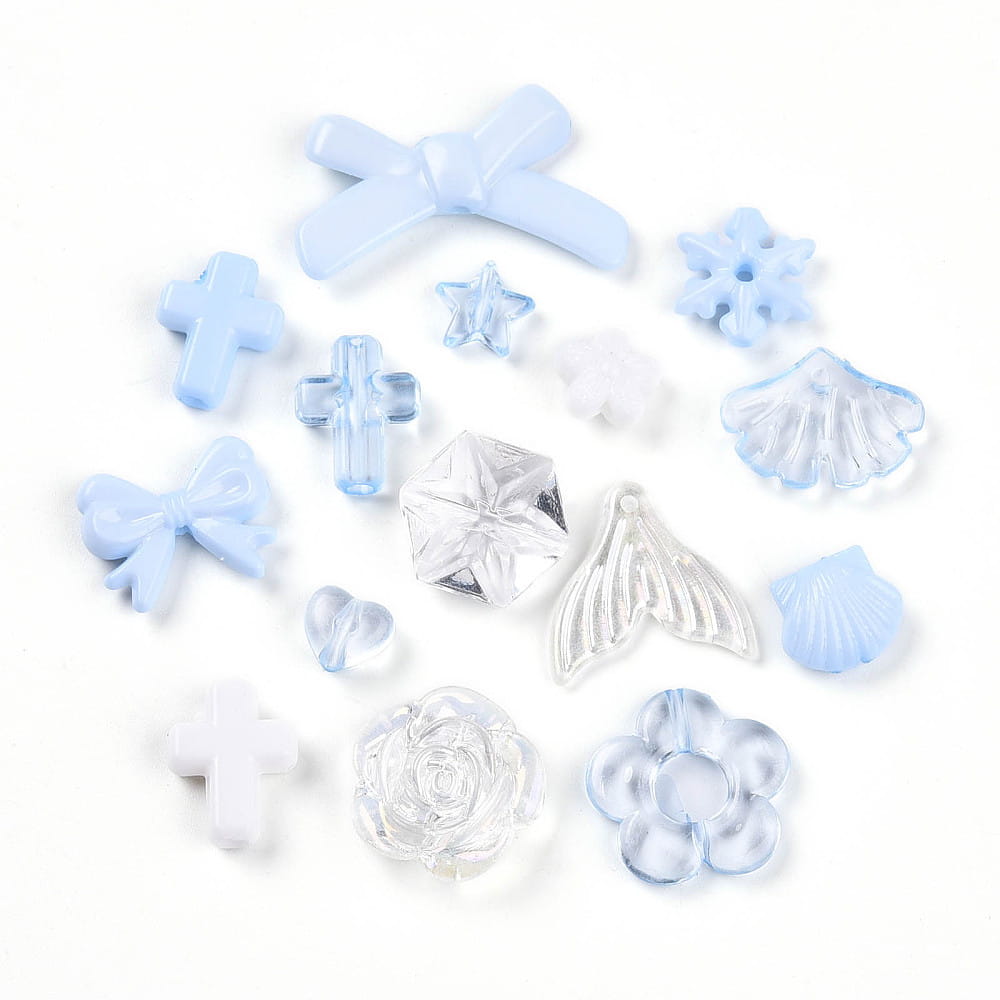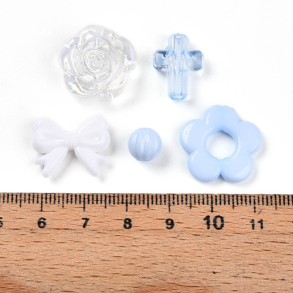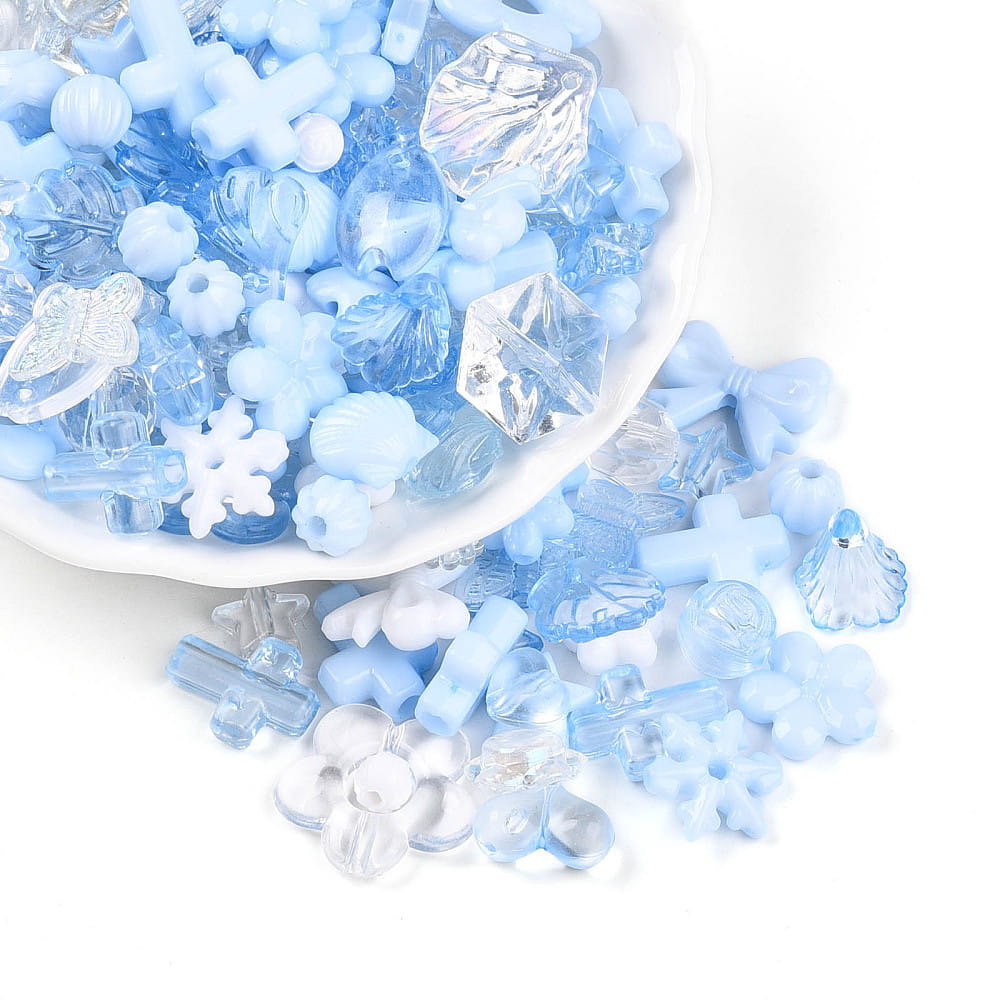 KOK148 Koraliki akrylowe MIX kształtów kokardka motylki serduszka błękit 25g