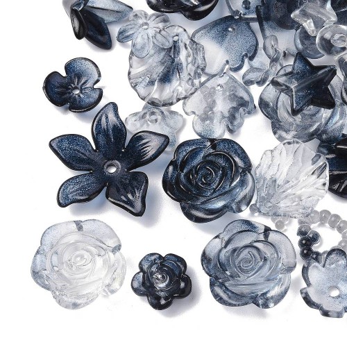 KOK15 Koraliki akrylowe przezroczyste MIX kształtów róże motylki czarne 25g