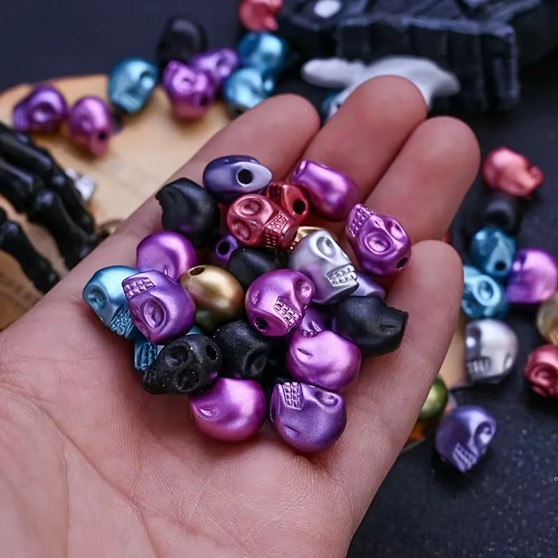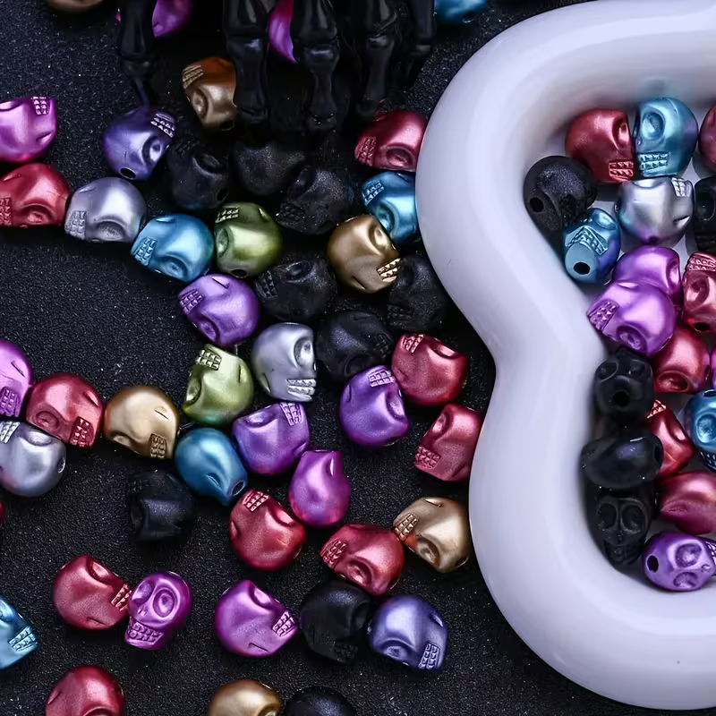 KOK164 Koraliki CZASZKA czaszki czachy goth mrok metaliczne mix 10szt