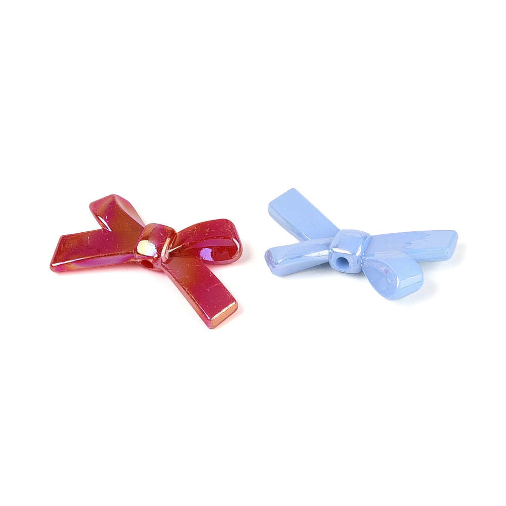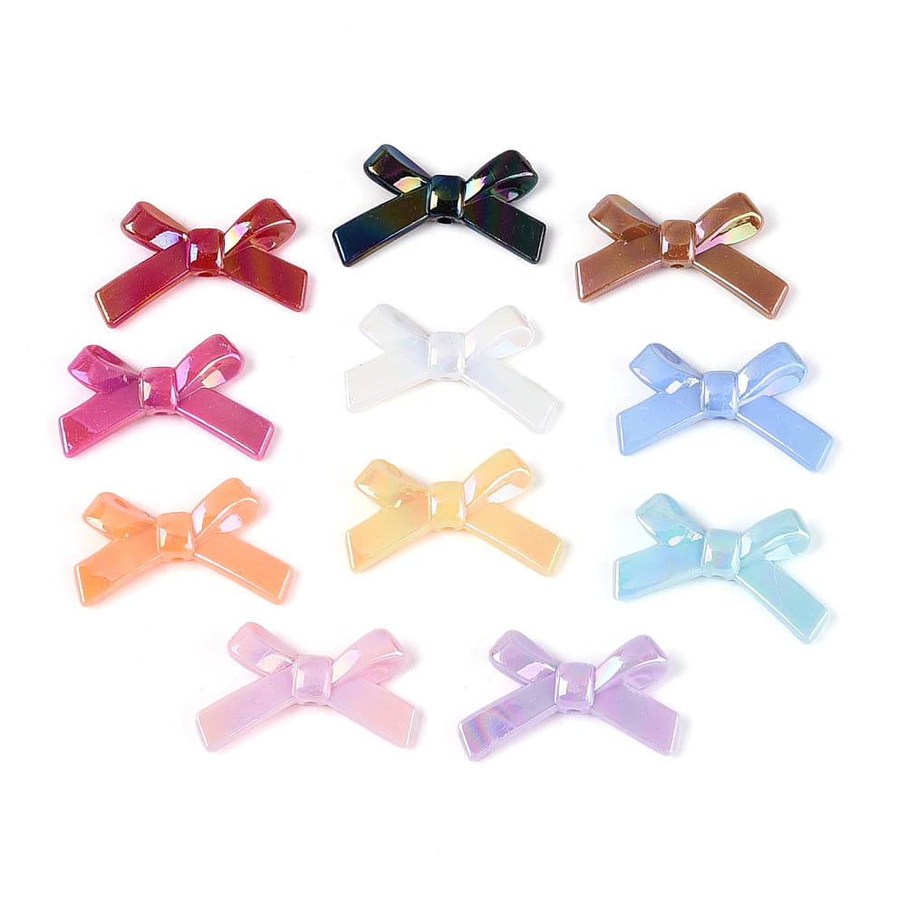 Koraliki akrylowe KOKARDKA kokardki 10 sztuk w miksie kolorów opalizujących, tzw. efekt syrenki.