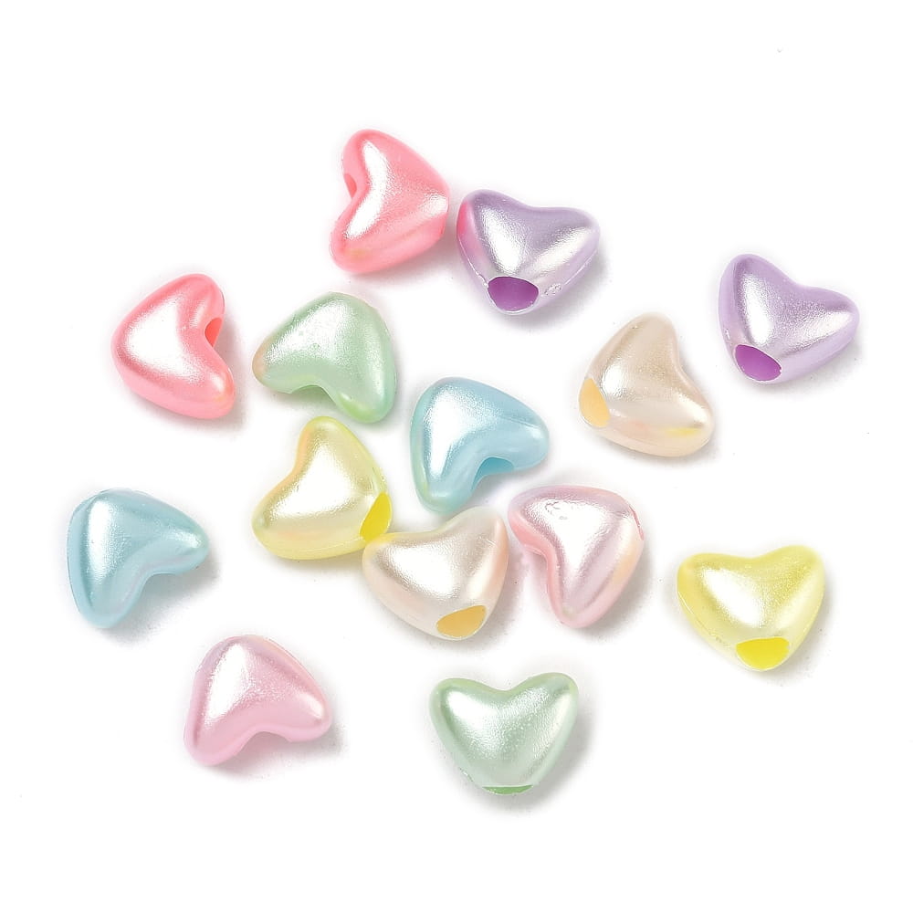 KOK170 Koraliki akrylowe Serca serduszka opalizujące perłowe 20szt