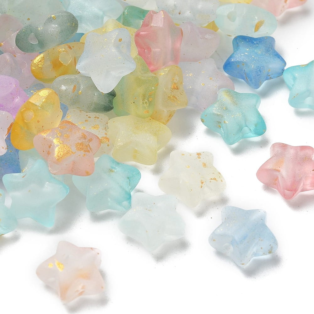 Koraliki Gwiazdeczki, gwiazdki akrylowe, 30 sztuk miks kolorów szronione, plamki akwarelki.