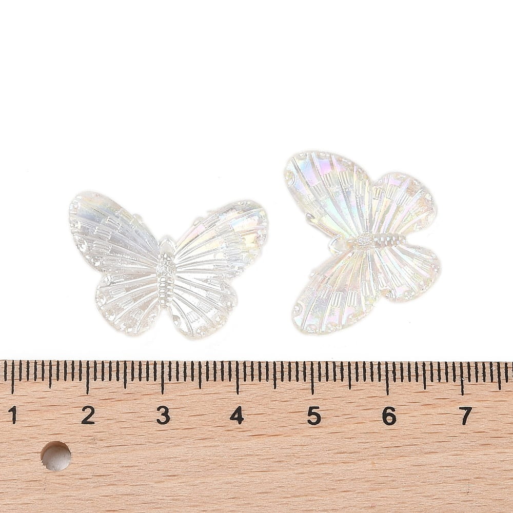 Koraliki zawieszki MOTYLKI motyl akrylowe, 10 sztuk bezbarwne przezroczyste opalizujące AB.
