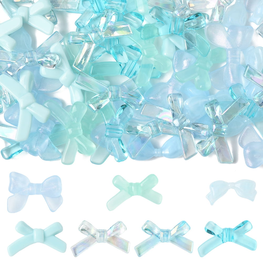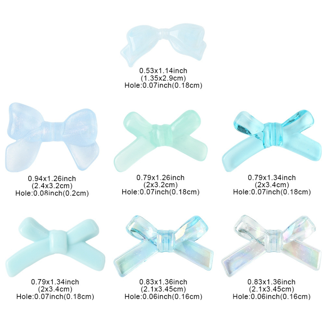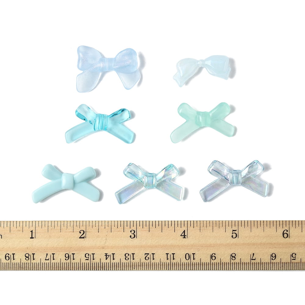 KOK198 Koraliki akrylowe KOKARDKA kokardki MIX wzorów zestaw 7szt niebieskie