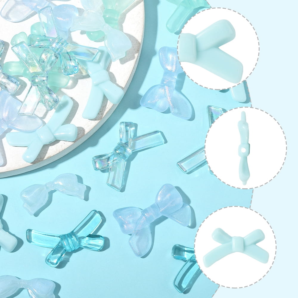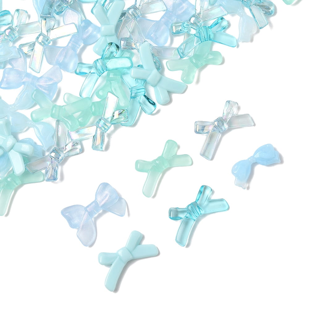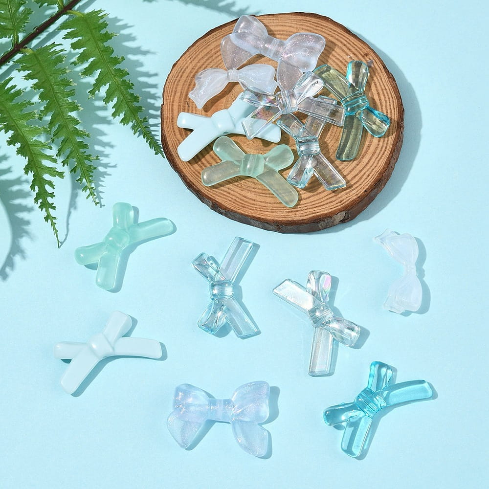 Koraliki akrylowe KOKARDKA kokardki 7 sztuk w miksie wzorów, w jednej tonacji kolorystycznej.