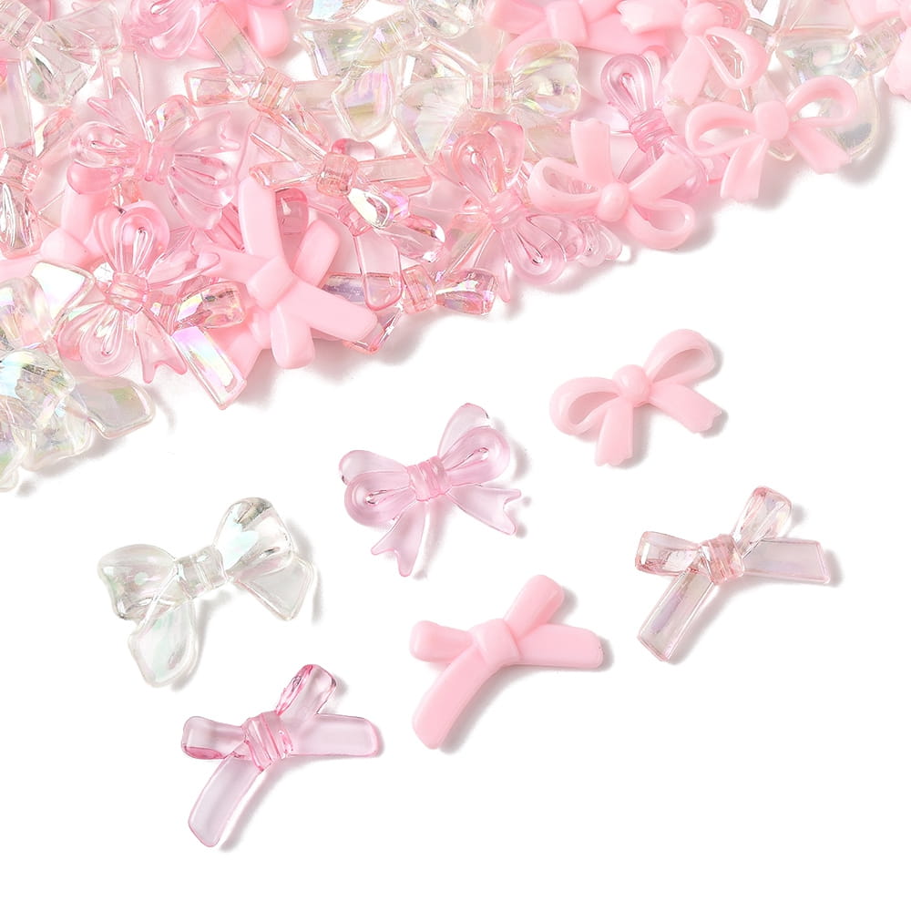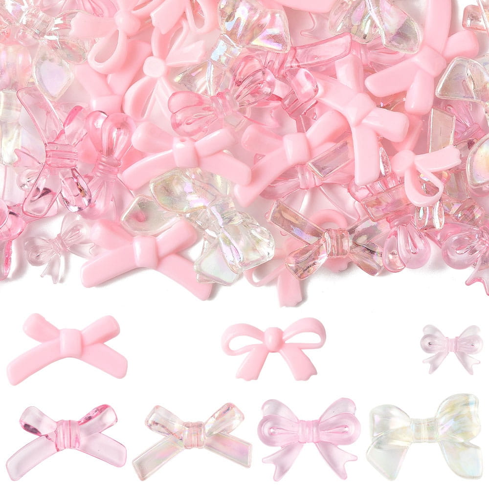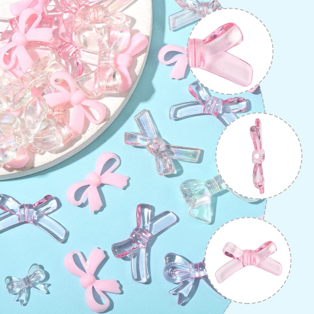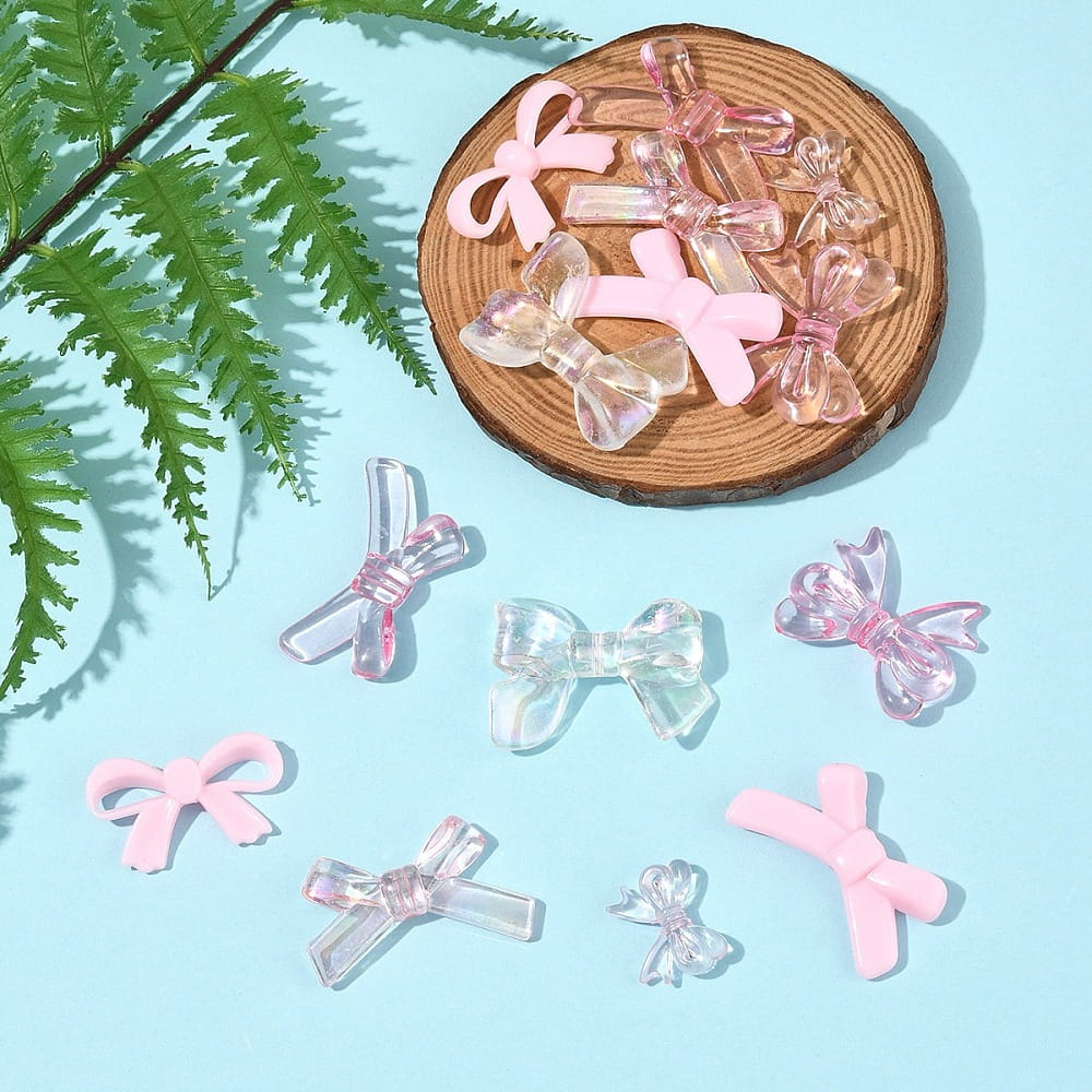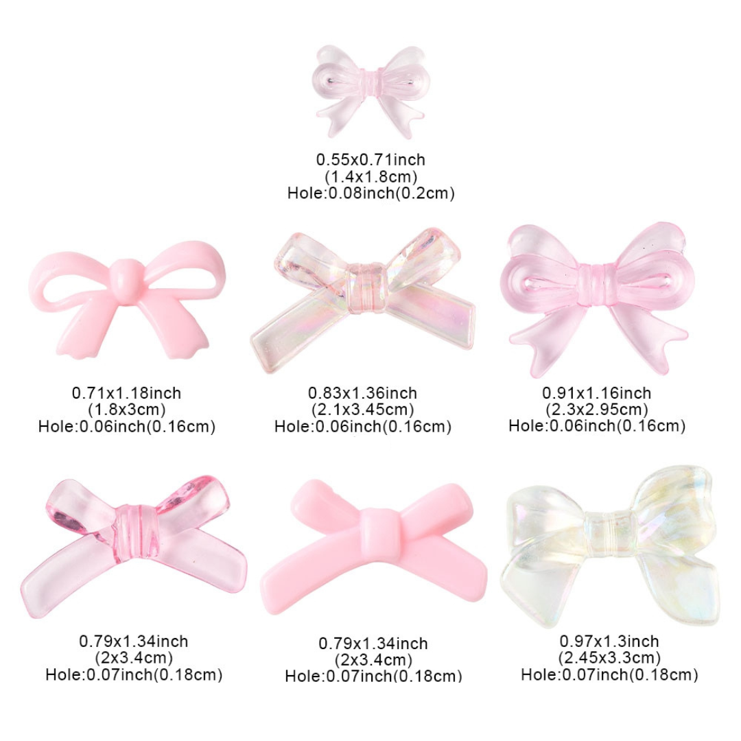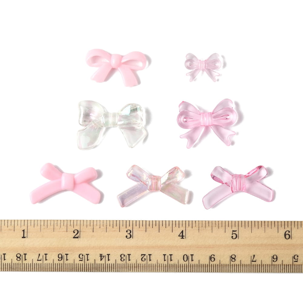 KOK199 Koraliki akrylowe KOKARDKA kokardki MIX wzorów zestaw 7szt różowe