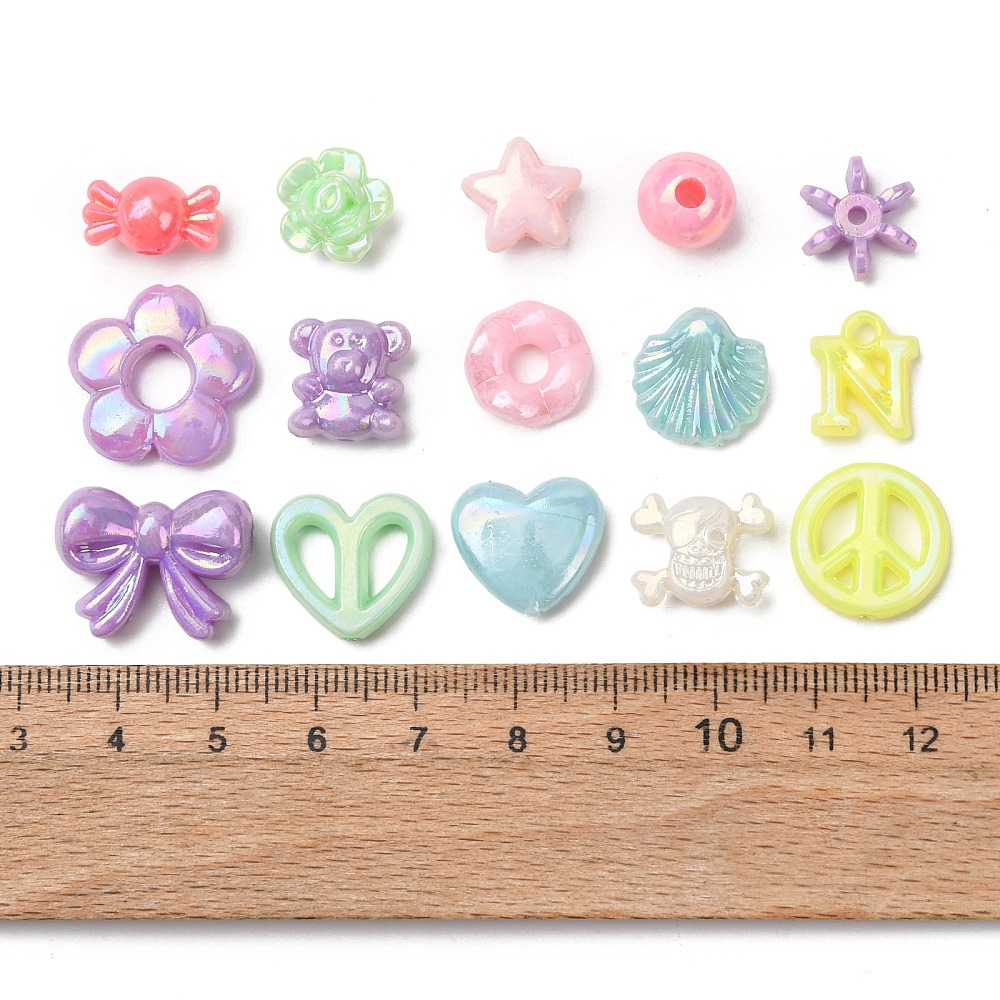 W opakowaniu znajduje się 25g koralików, różne kształty. Od dużych po malutkie. Idealne, jeśli robisz bransoletki i inne wyroby biżuterii hand made, zwłaszcza te personalizowane. Koraliki są wykonane z trwałego akrylu, nie tracą koloru. Są świetne do wykonania breloków, zawieszek i zakładek do książek. Fajnie wyglądają w bransoletkach z koralików fimo katsuki oraz do koralików literki.