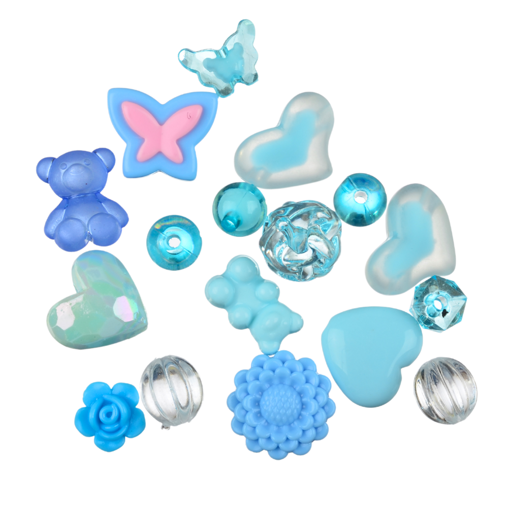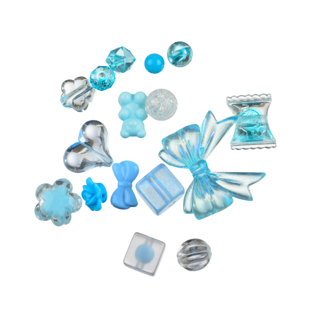W opakowaniu znajduje się 20g koralików, różne kształty. Od dużych po malutkie. Między innymi kwiatek, róża, gwiazda, kokardka, kulka, flakonik perfum, kostka, serduszko, cukierek, misiek, motylek. Idealne, jeśli robisz bransoletki i inne wyroby biżuterii hand made, zwłaszcza te personalizowane. Koraliki są wykonane z trwałego akrylu, nie tracą koloru. Są świetne do wykonania smyczy do telefonu, breloków, zawieszek i zakładek do książek. Fajnie wyglądają w bransoletkach z koralików fimo katsuki oraz do koralików literki.