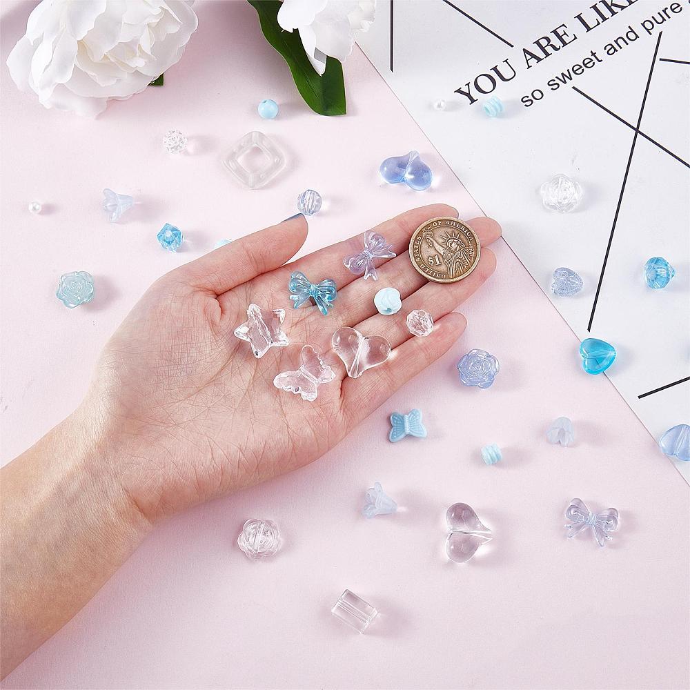 KOK29 Koraliki akrylowe MIX kształtów niebieskie przezroczyste 20g