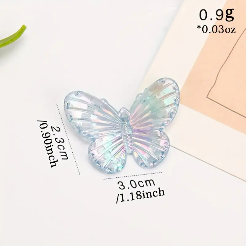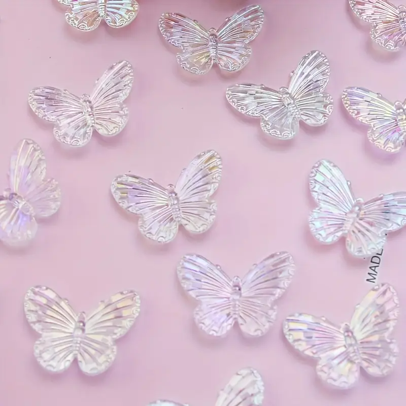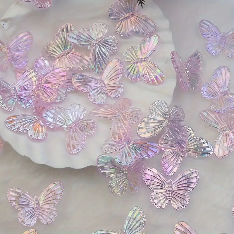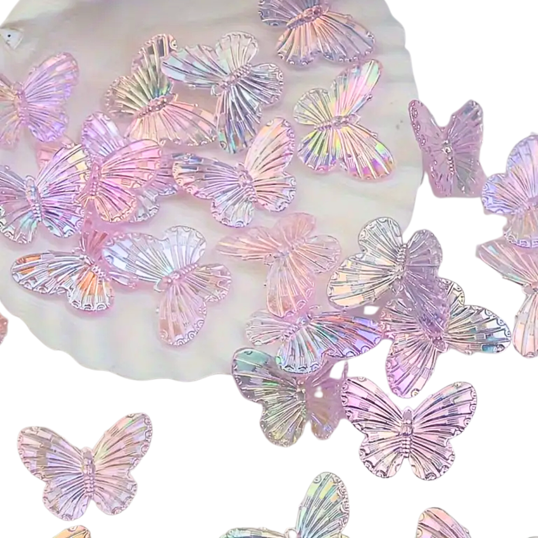 Koraliki zawieszki MOTYLKI motyl akrylowe, 5 sztuk jasnoróżowe opalizujące AB.