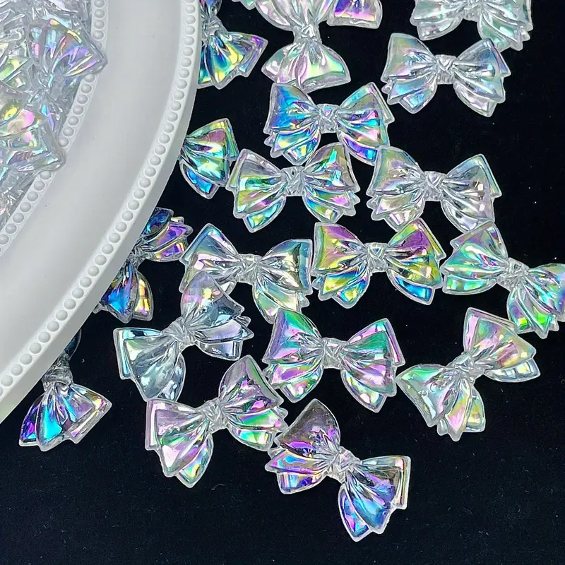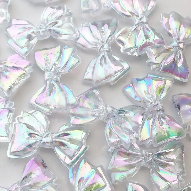 W opakowaniu znajdują się dwa piękne koraliki zawieszki kokardka, opalizujące, tzw. efekt syrenki. Idealne, jeśli robisz bransoletki i inne wyroby biżuterii hand made, zwłaszcza te personalizowane. Koraliki są wykonane z trwałego akrylu, nie tracą koloru. Są świetne do wykonania breloków, zawieszek i zakładek do książek.