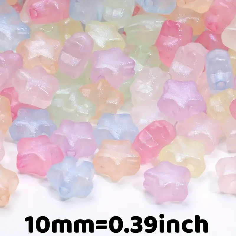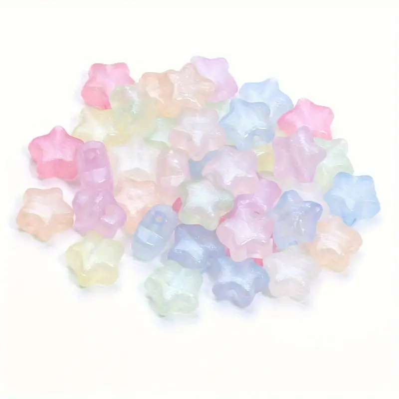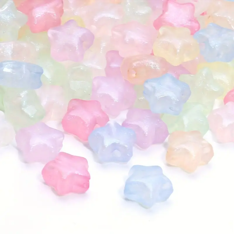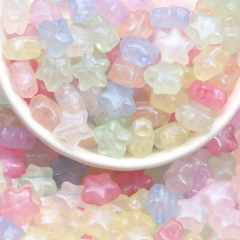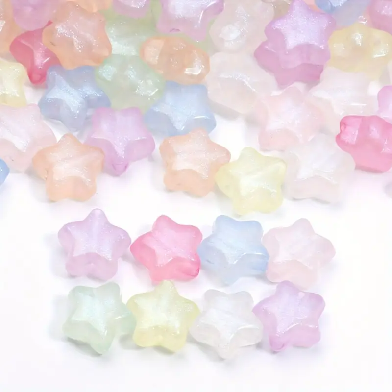 Koraliki gwiazdki GWIAZDA akrylowe, 10 sztuk w miksie kolorów pastelowych z mieniącym się pyłkiem.
