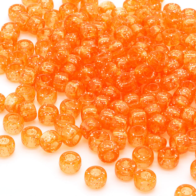 KOP114 Koraliki oponki 9mm kandi pony bead pomarańczowe brokat 20szt