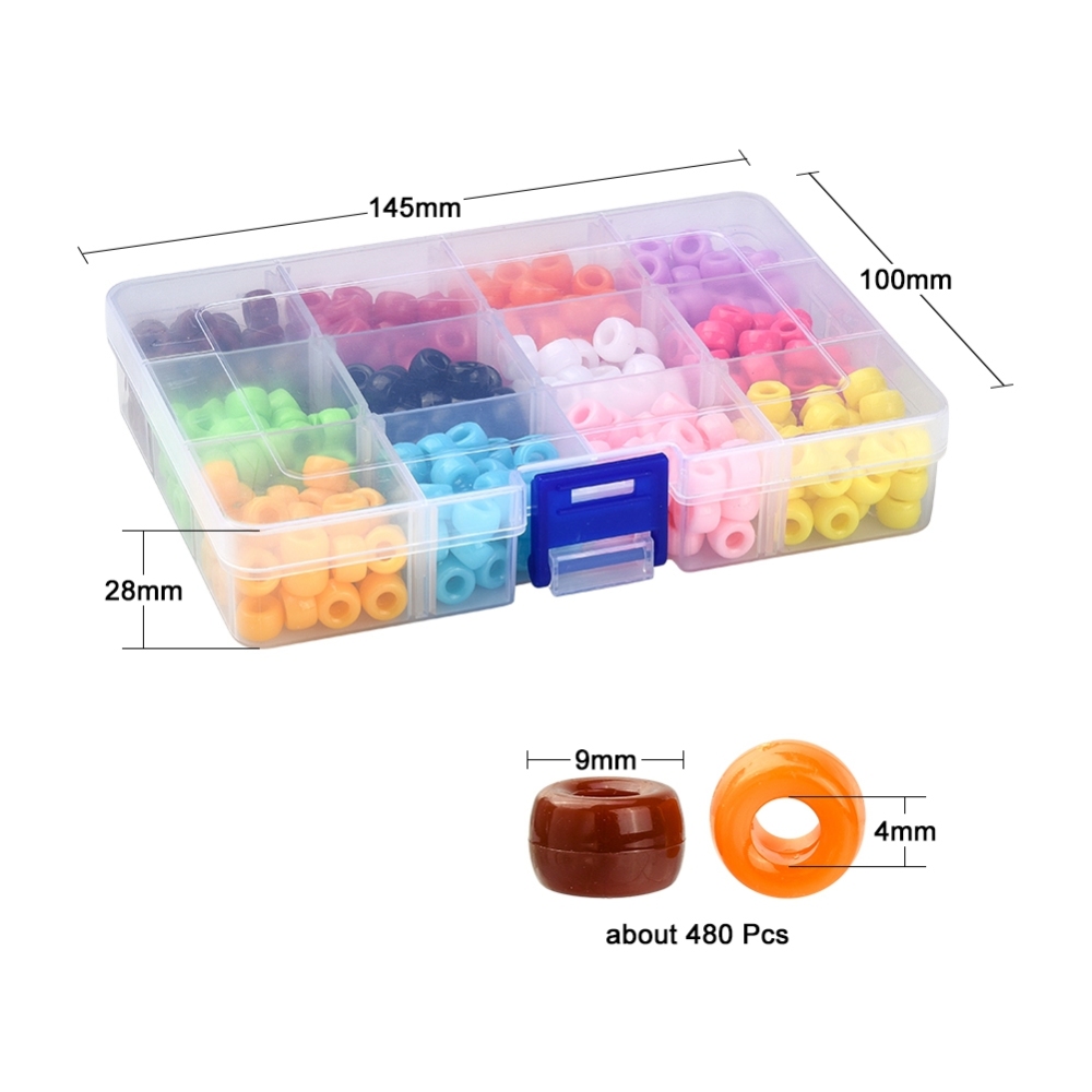 KOP145 Zestaw koralików kandi oponki akryl 9mm warkoczyki bransoletki pony beads 480szt