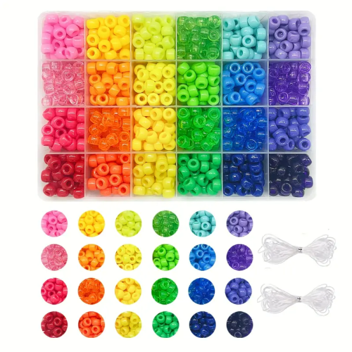 W opakowaniu znajduje się około 480 koralików w 24 różnych kolorach w plastikowym organizerze. Idealne, jeśli robisz bransoletki i inne wyroby biżuterii hand made, zwłaszcza te personalizowane. Koraliki są wykonane z trwałego akrylu, nie tracą koloru, a duży otwór pozwala na ich stosowanie jako koraliki modułowe lub do ozdabiania fryzur. Są świetne do wykonania breloków, zawieszek i zakładek do książek. Fajnie wyglądają w bransoletkach z koralików fimo katsuki oraz do koralików literki.