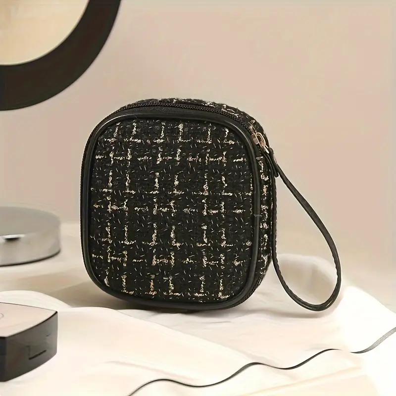 Piękna mini kosmetyczka z uchwytem COCO w stylu znanego domu mody.
