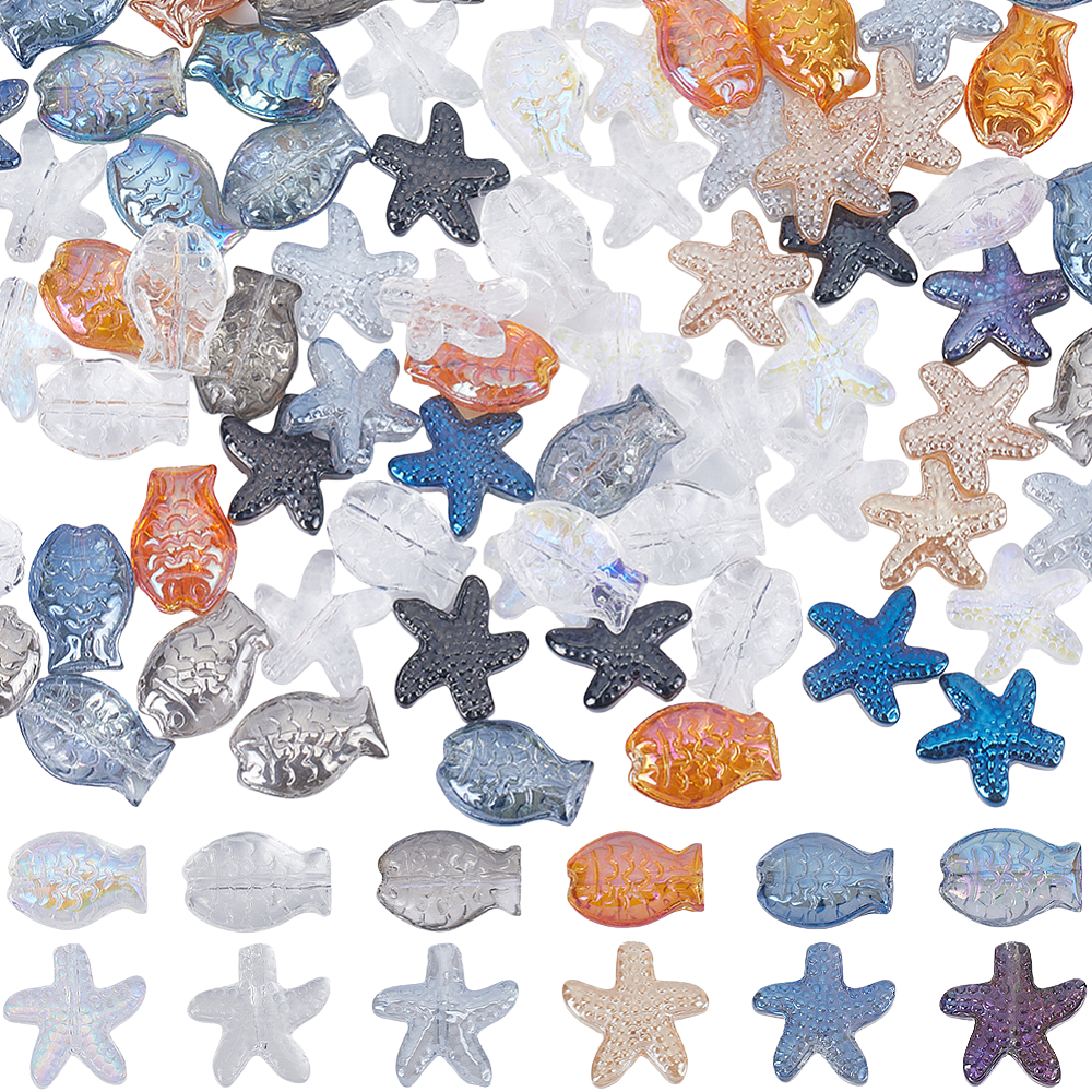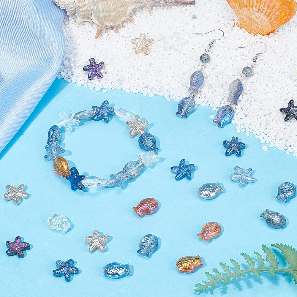 KSZ14 Koraliki szklane galwanizowane opalizujące MORSKIE OCEAN rybka rozgwiazda 10szt miks