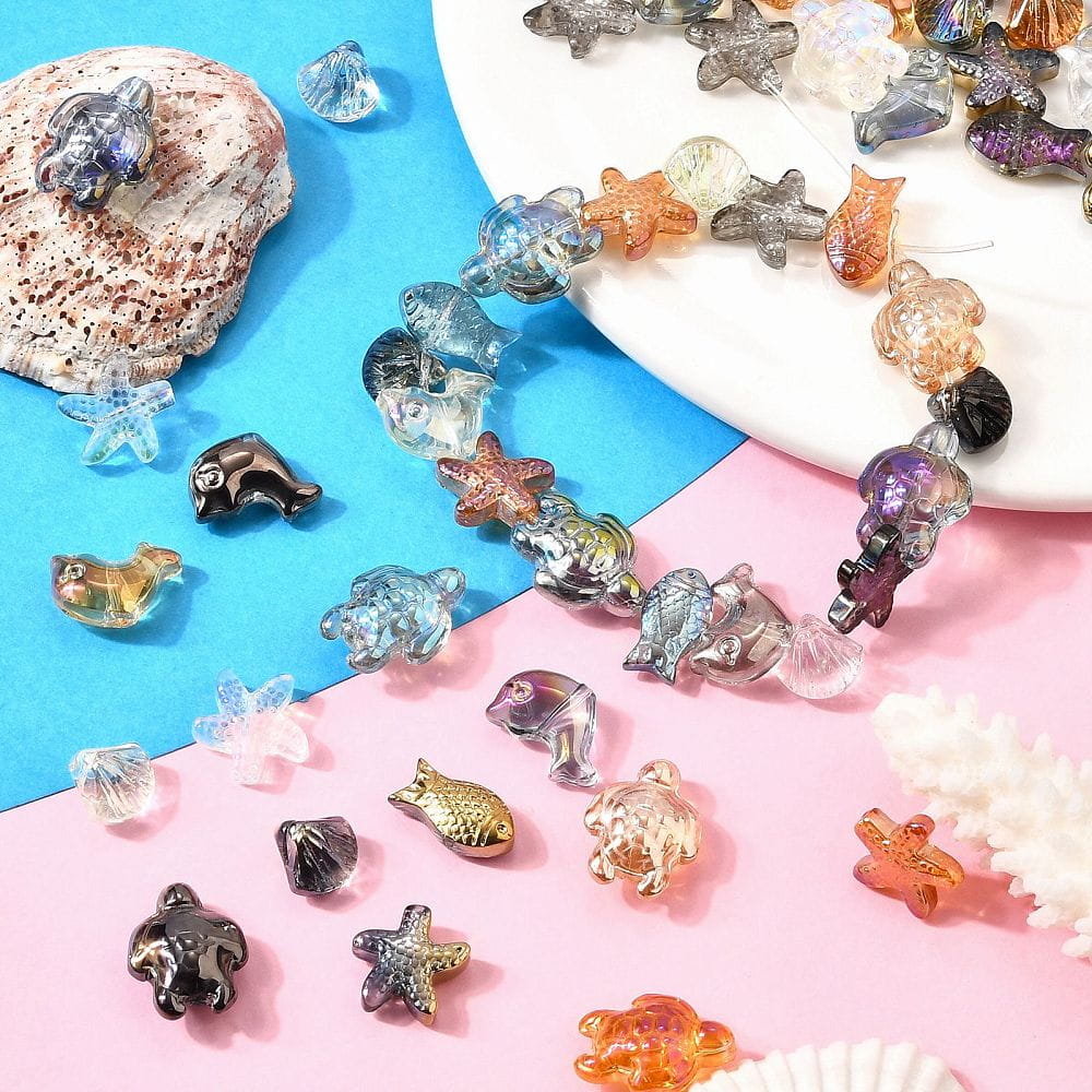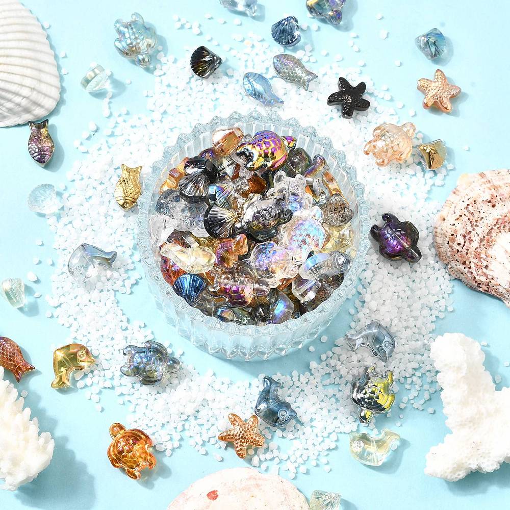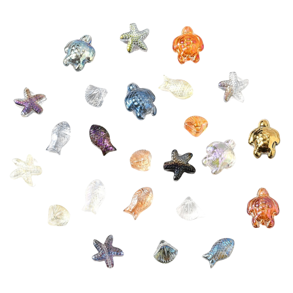W opakowaniu 10szt. - rybka, rozgwiazda, muszla, żółwik, delfin - miks morskich kolorów, które pięknie się mienią.