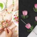 W opakowaniu znajduje się 10 koralików - 5 listków i 5 kwiatków. Idealne, jeśli robisz bransoletki i inne wyroby biżuterii hand made, zwłaszcza te personalizowane. Koraliki są wykonane ze szkła, nie tracą koloru, są przepiękne i cudownie się mienią pod światło. Można je wtapiać w żywice epoksydowe. Są świetne do wykonania breloków, zawieszek i zakładek do książek.