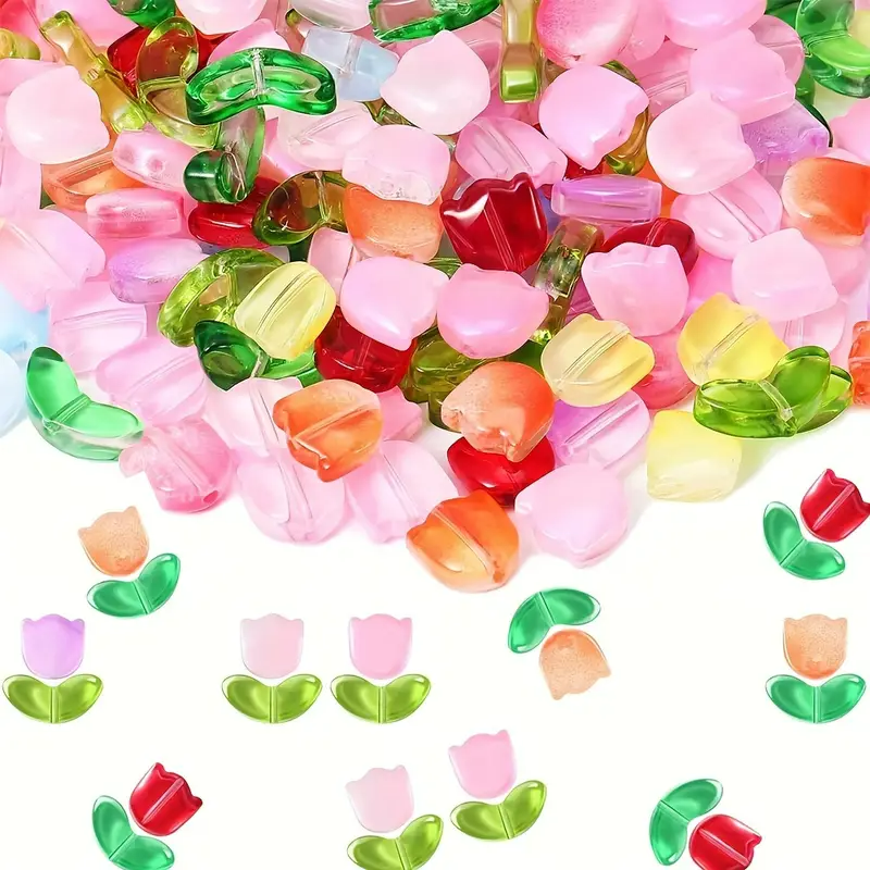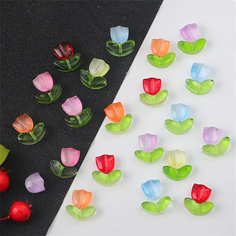 Koraliki szklane TULIPAN tulipanki kwiatki listki do bransoletki 10 sztuk.