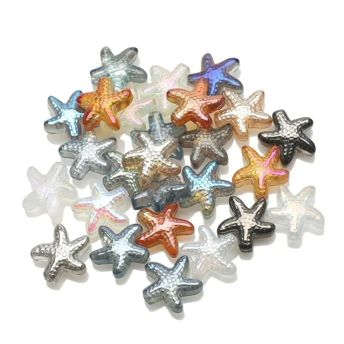 KSZ21 Koraliki szklane galwanizowane opalizujące MORSKIE OCEAN rozgwiazda 10szt miks