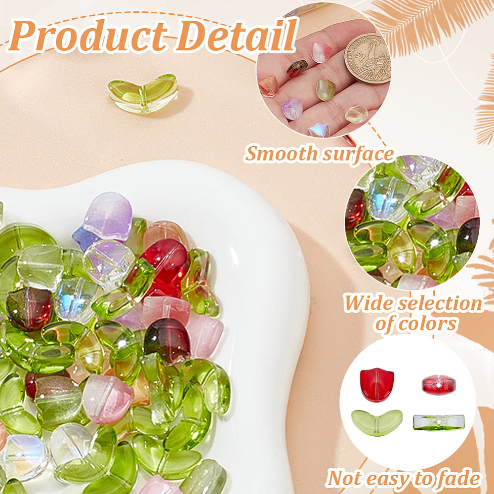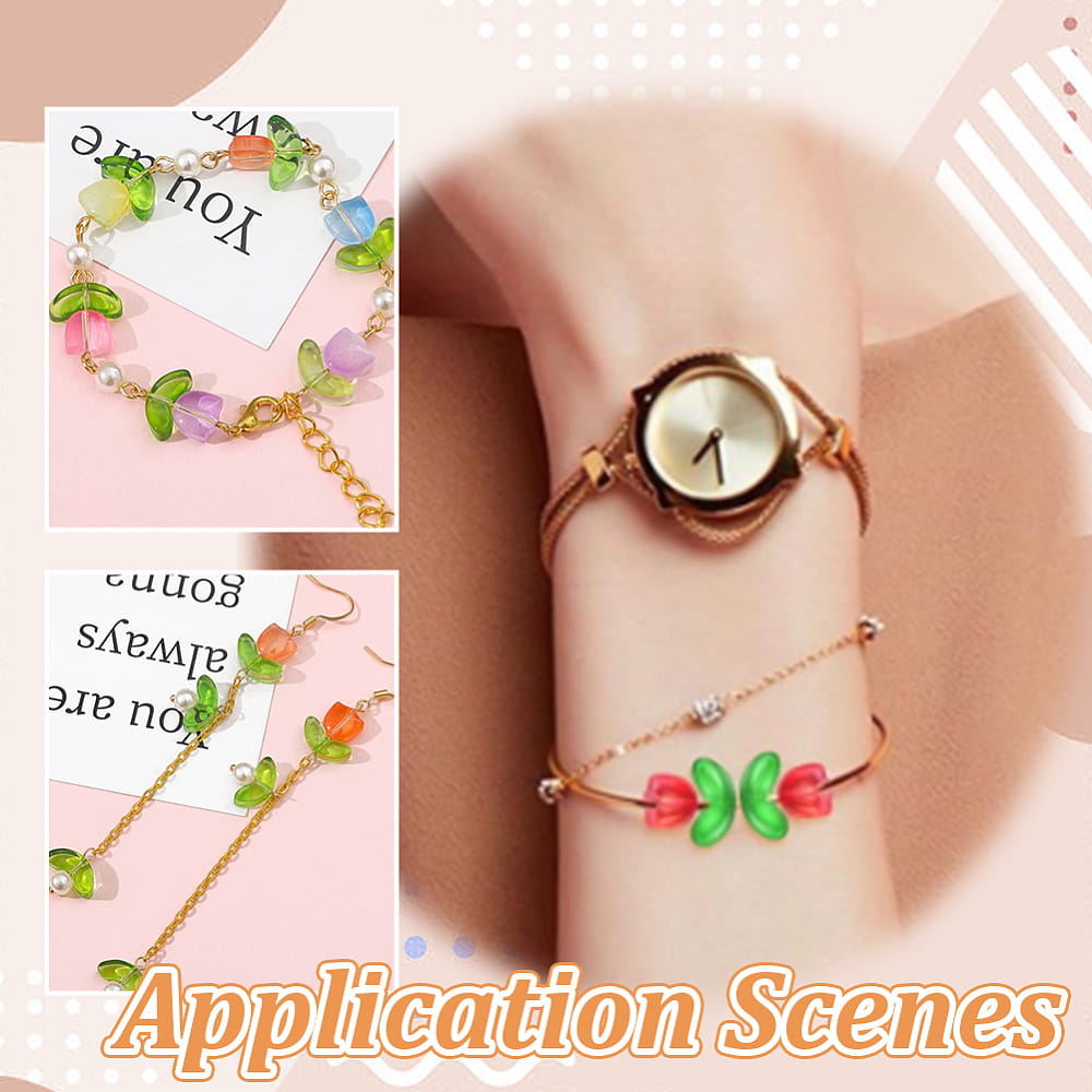 Koraliki szklane TULIPAN tulipanki kwiatki listki do bransoletki 120 sztuk.
