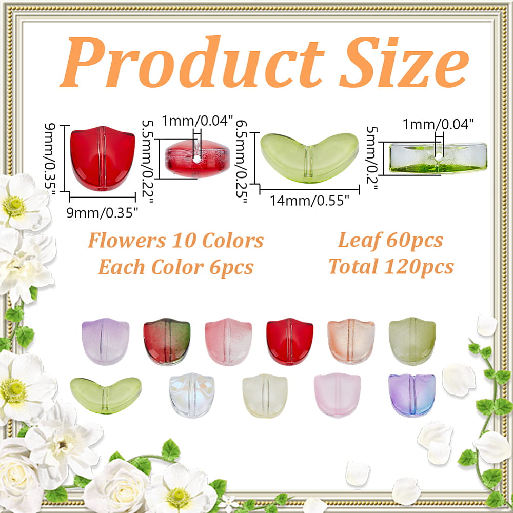 W opakowaniu znajduje się 120 koralików - 60 listków i 60 kwiatków. Idealne, jeśli robisz bransoletki i inne wyroby biżuterii hand made, zwłaszcza te personalizowane. Koraliki są wykonane ze szkła, nie tracą koloru, są przepiękne i cudownie się mienią pod światło. Można je wtapiać w żywice epoksydowe. Są świetne do wykonania breloków, zawieszek i zakładek do książek.
