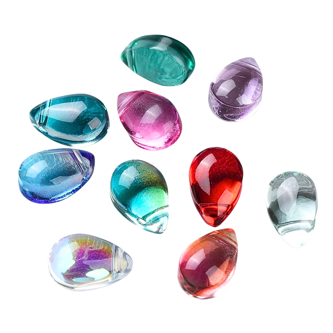 Koraliki szklane kropelki łezki łezka galwanizowane opalizujące do bransoletki, kolczyków, zawieszek i innych - 20 sztuk.