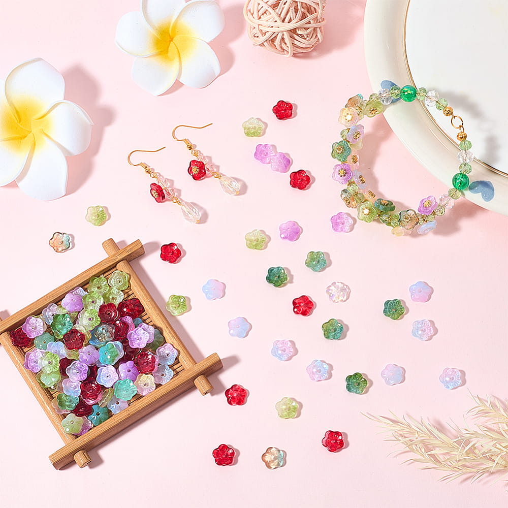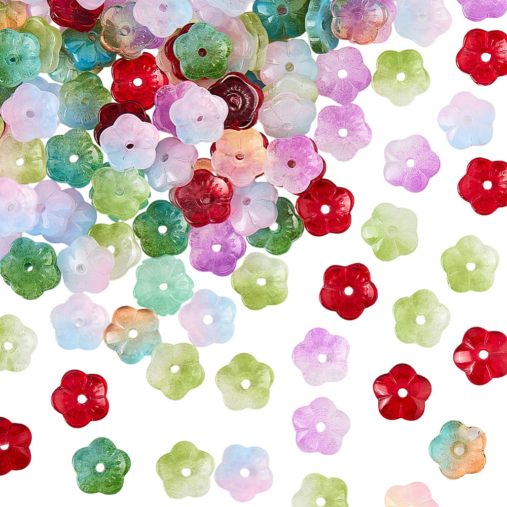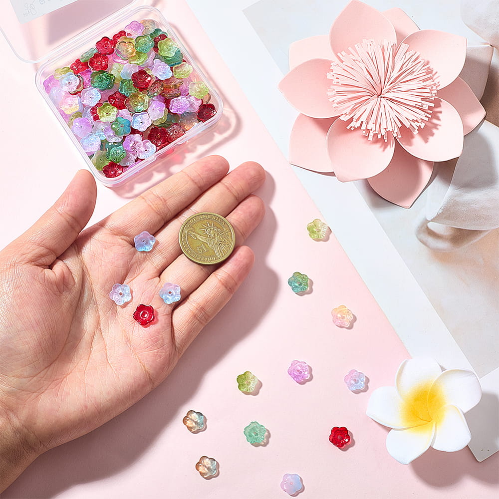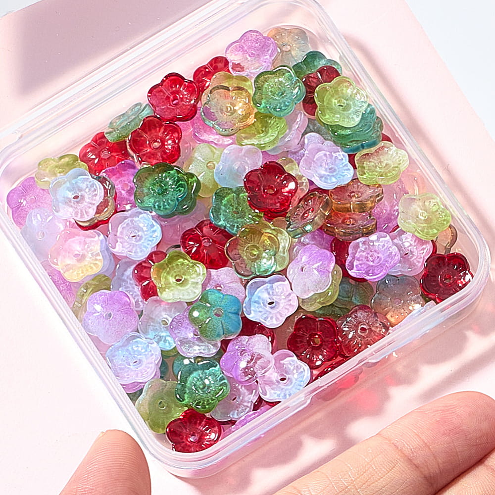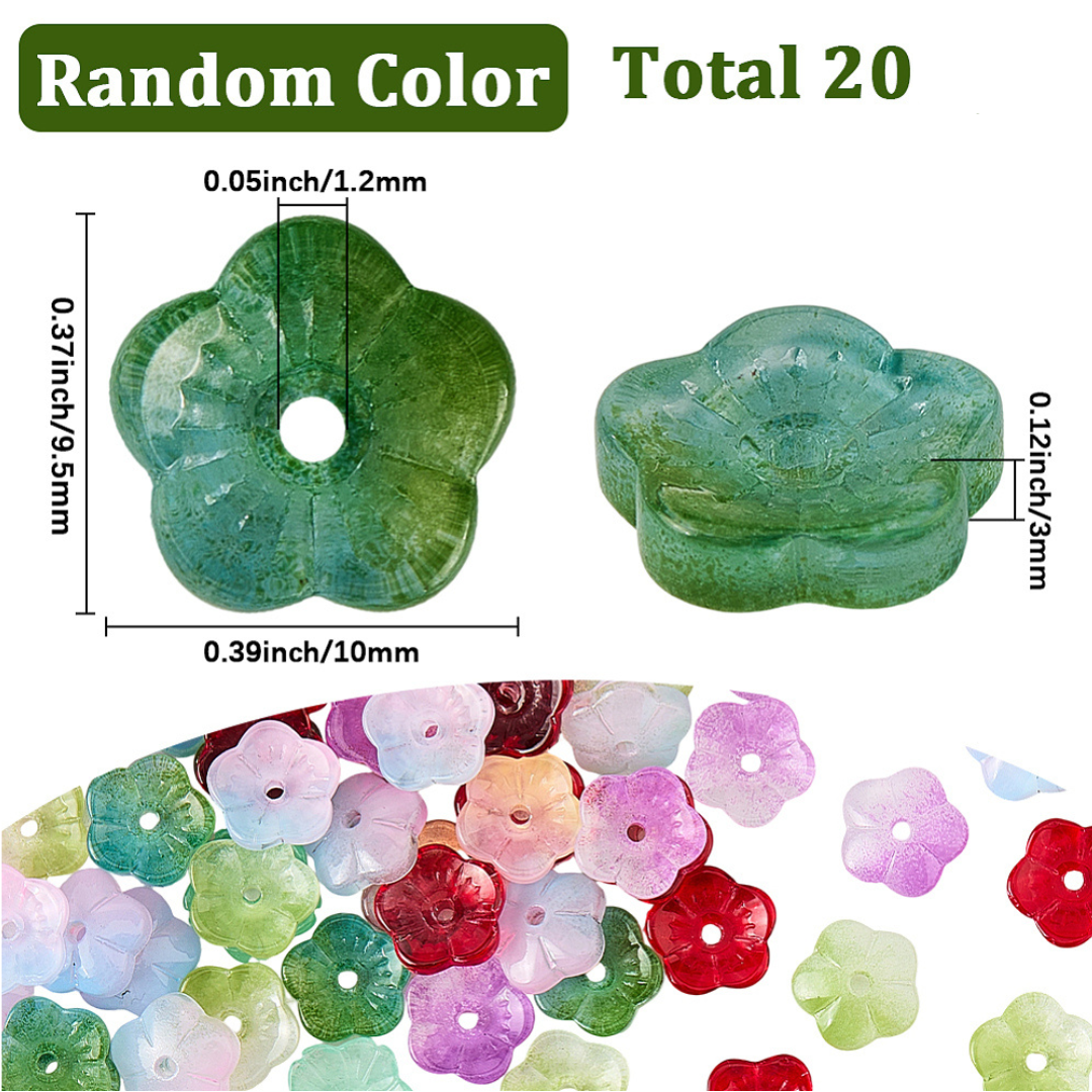 Koraliki szklane kwiatuszki kwiaty kwiatki galwanizowane opalizujące do bransoletki, kolczyków, zawieszek i innych - 20 sztuk.
