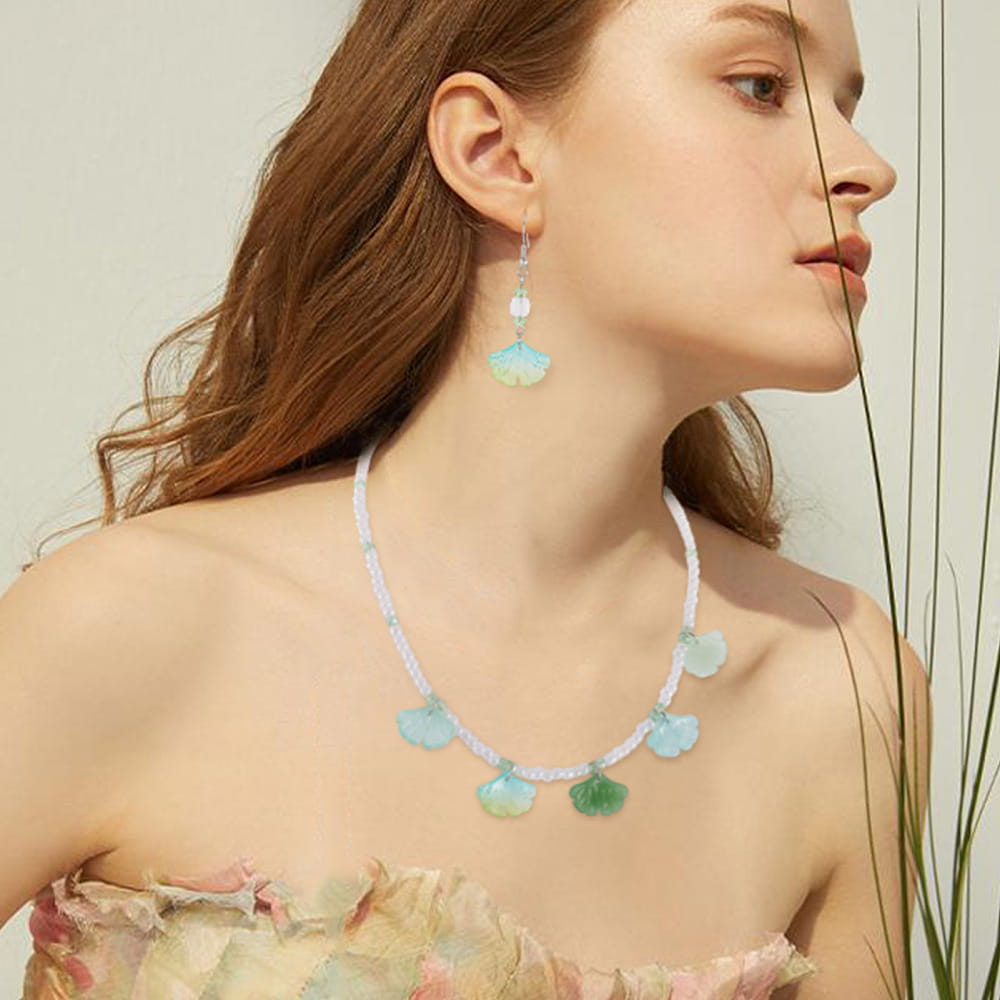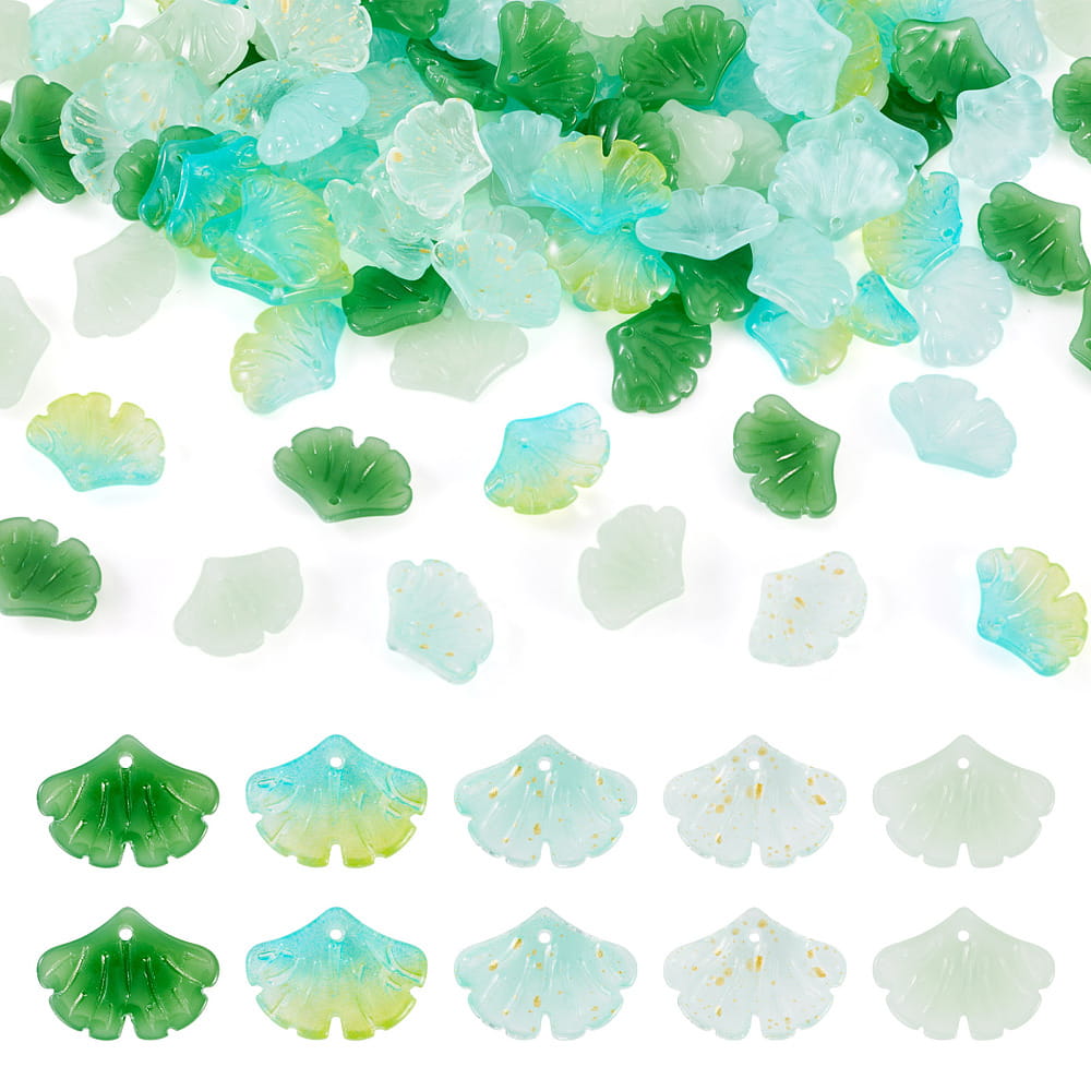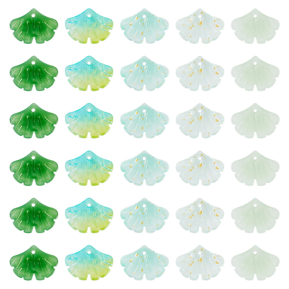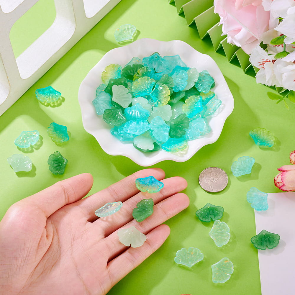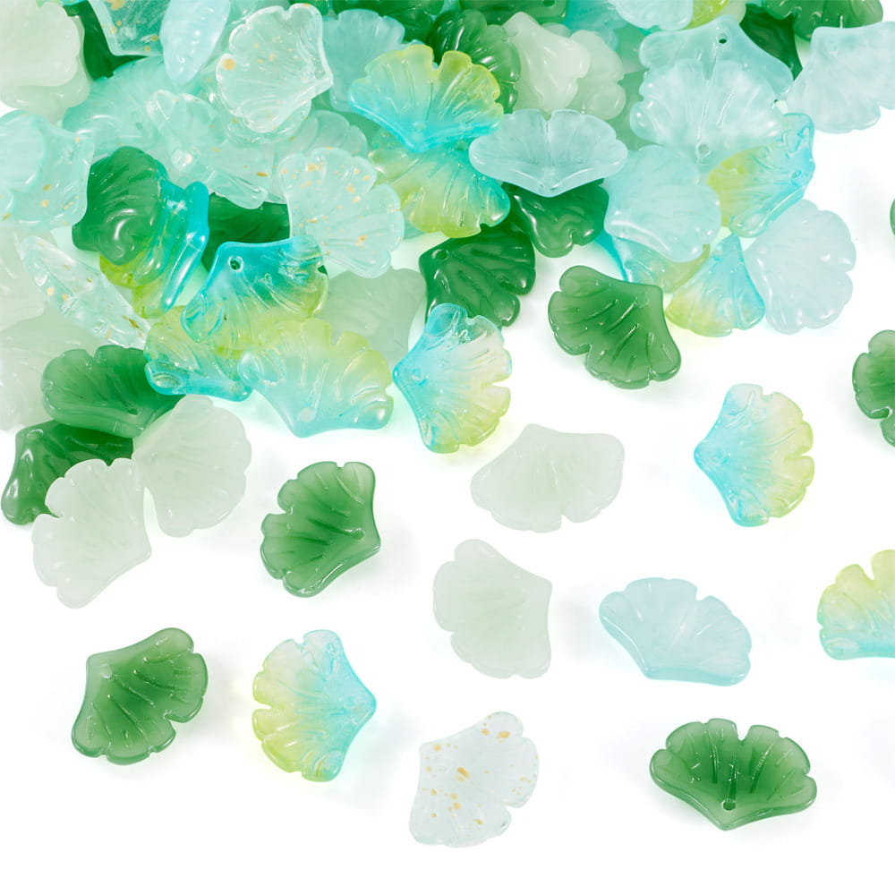 Koraliki szklane miłorząb liście listki gingko biloba do bransoletki, kolczyków, zawieszek i innych - 10 sztuk.
