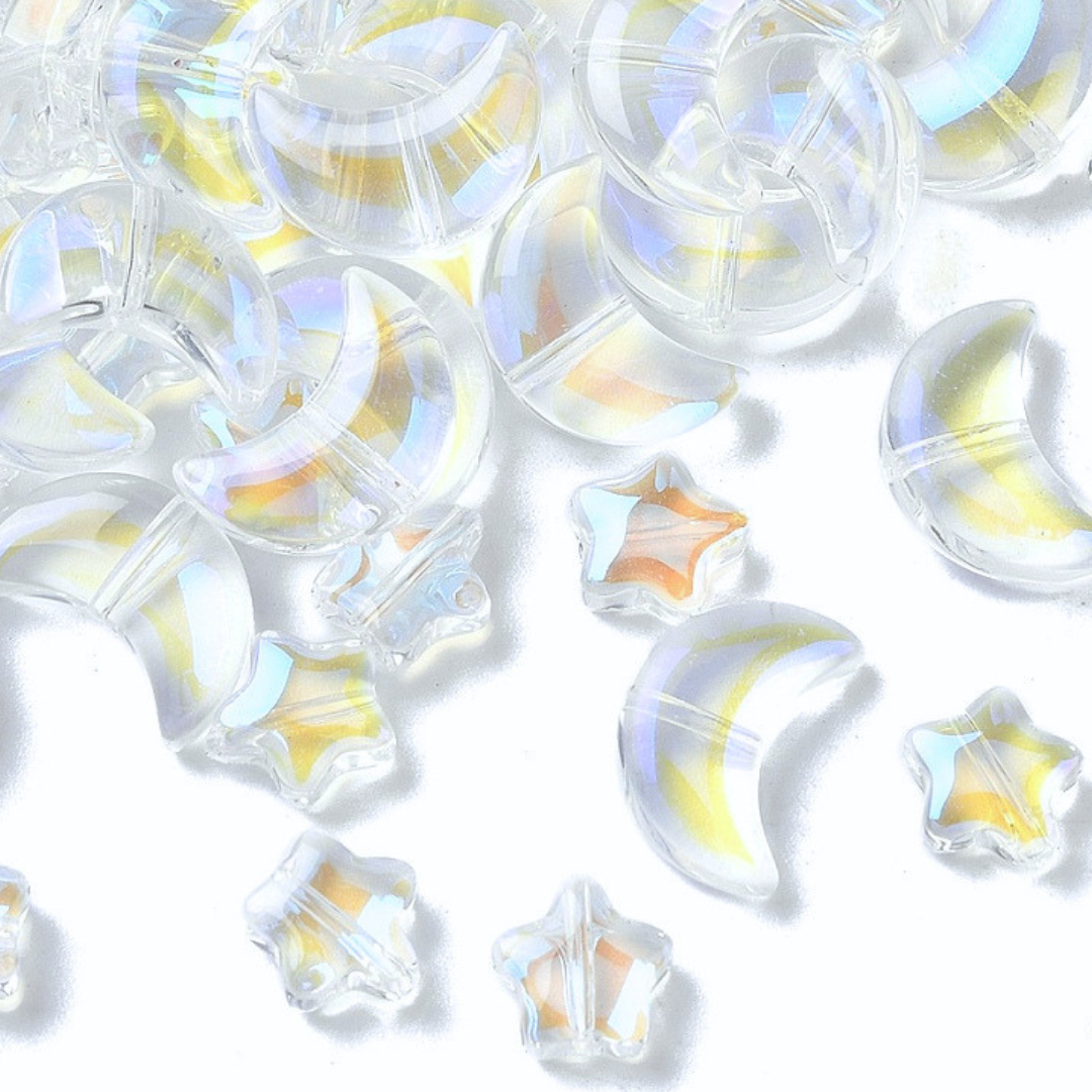 KSZ83 Koraliki szklane MOON księżyc KSIĘŻYCE i gwiazdki 10szt opalizujące