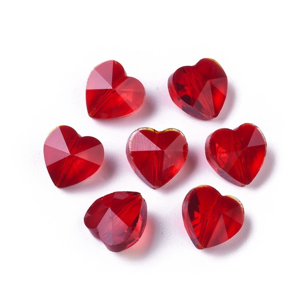 KSZ88 Koraliki szklane kryształowe serce serduszka 10szt czerwone