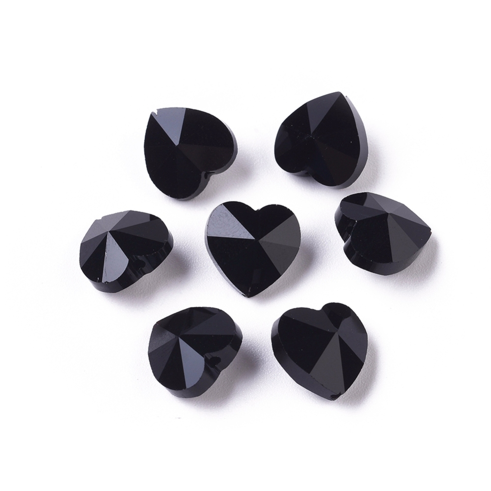 KSZ89 Koraliki szklane kryształowe serce serduszka 10szt czarne