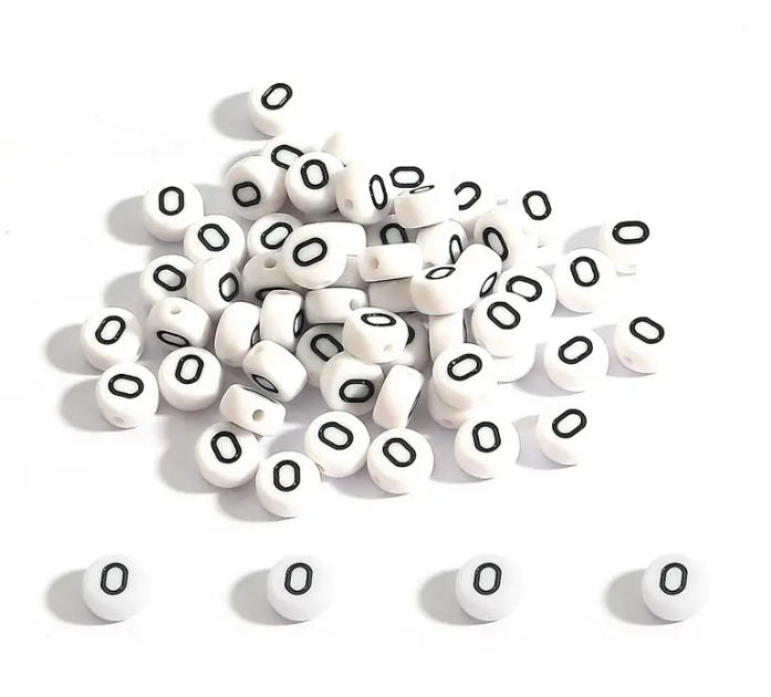 Koraliki literki białe monetki 7mm samogłoski literka litera O 20 sztuk