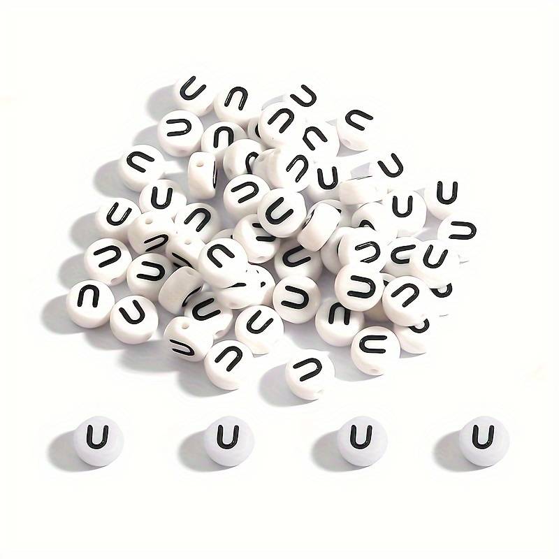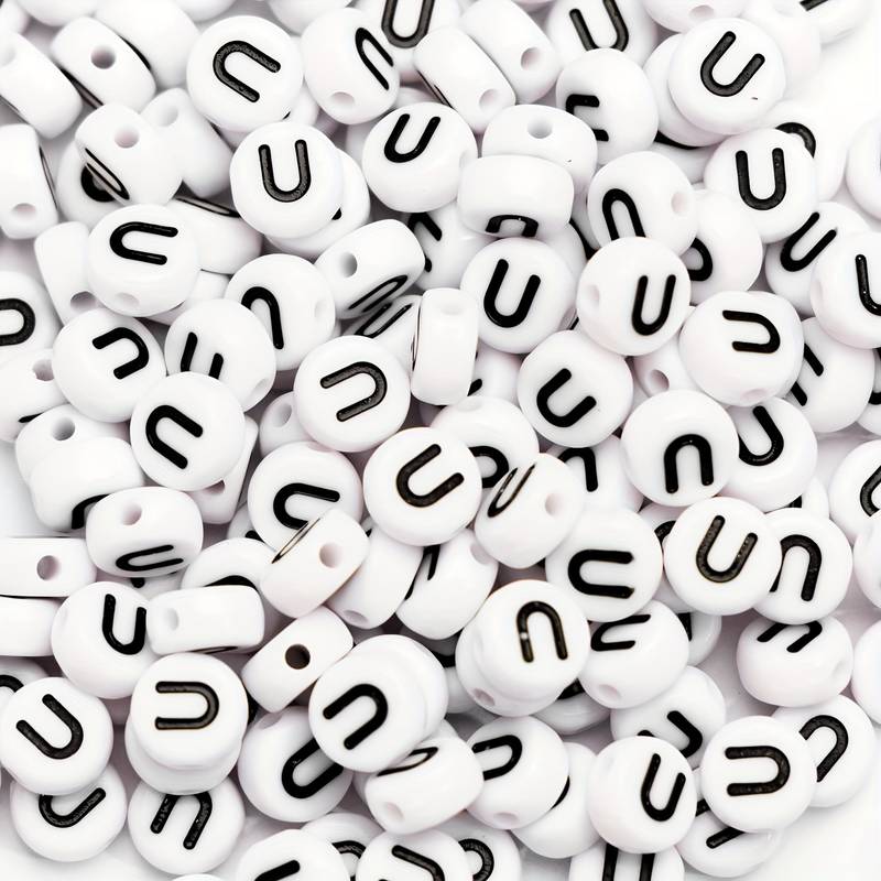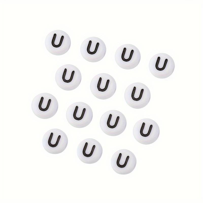 Koraliki literki białe monetki 7mm samogłoski literka litera U 20 sztuk